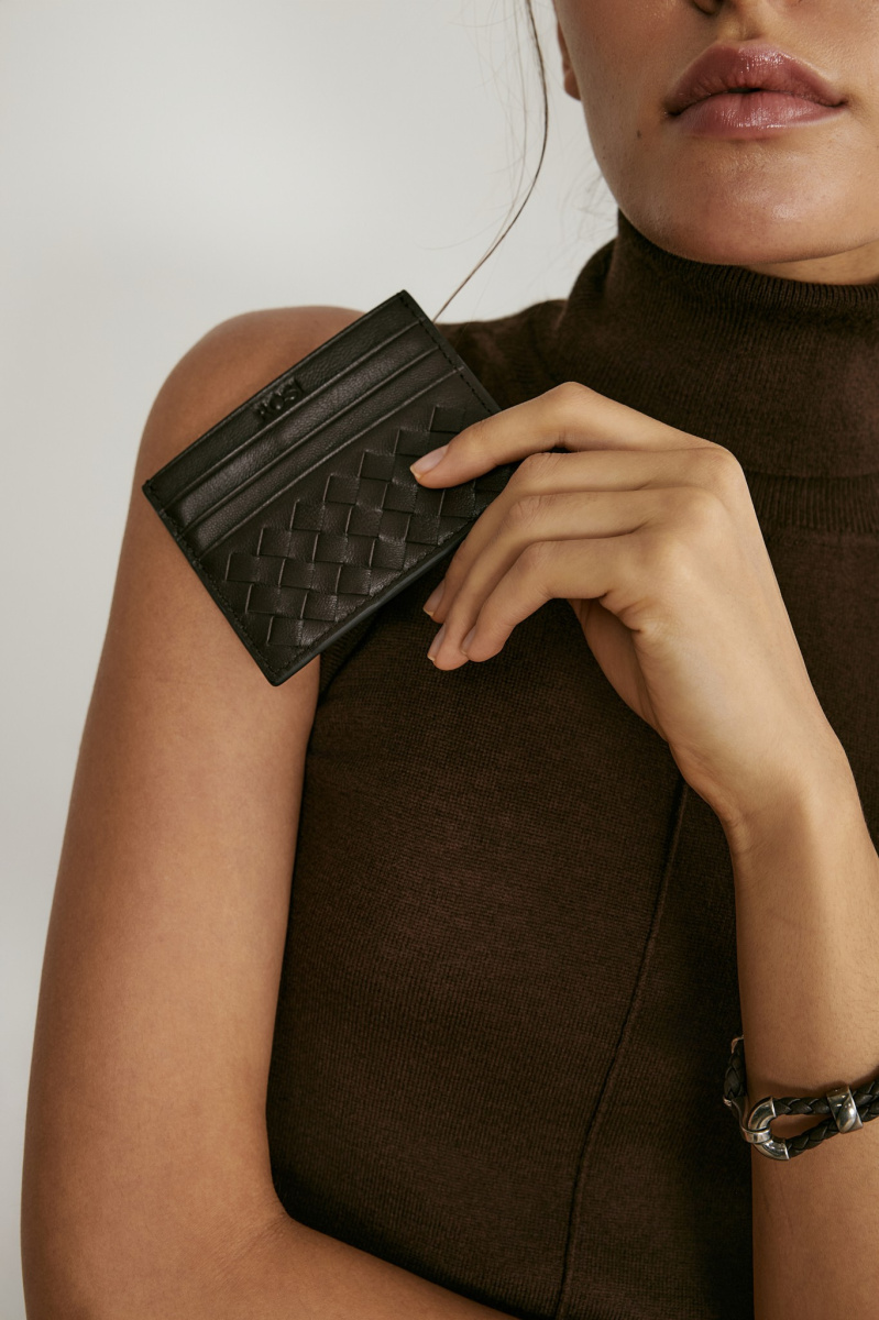 Компактный картхолдер — один из пяти элементов коллекции унисекс-аксессуаров из натуральной кожи.