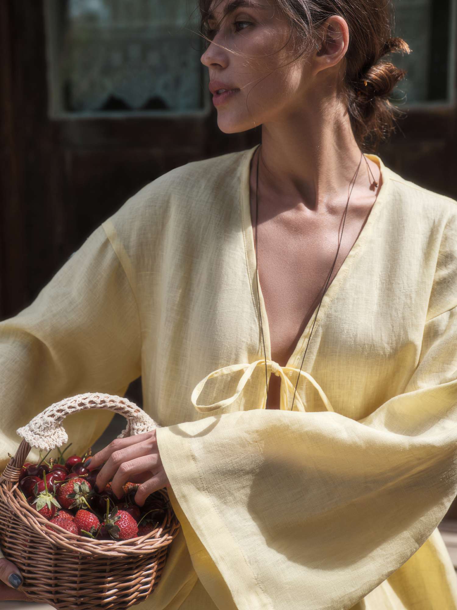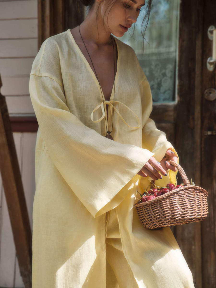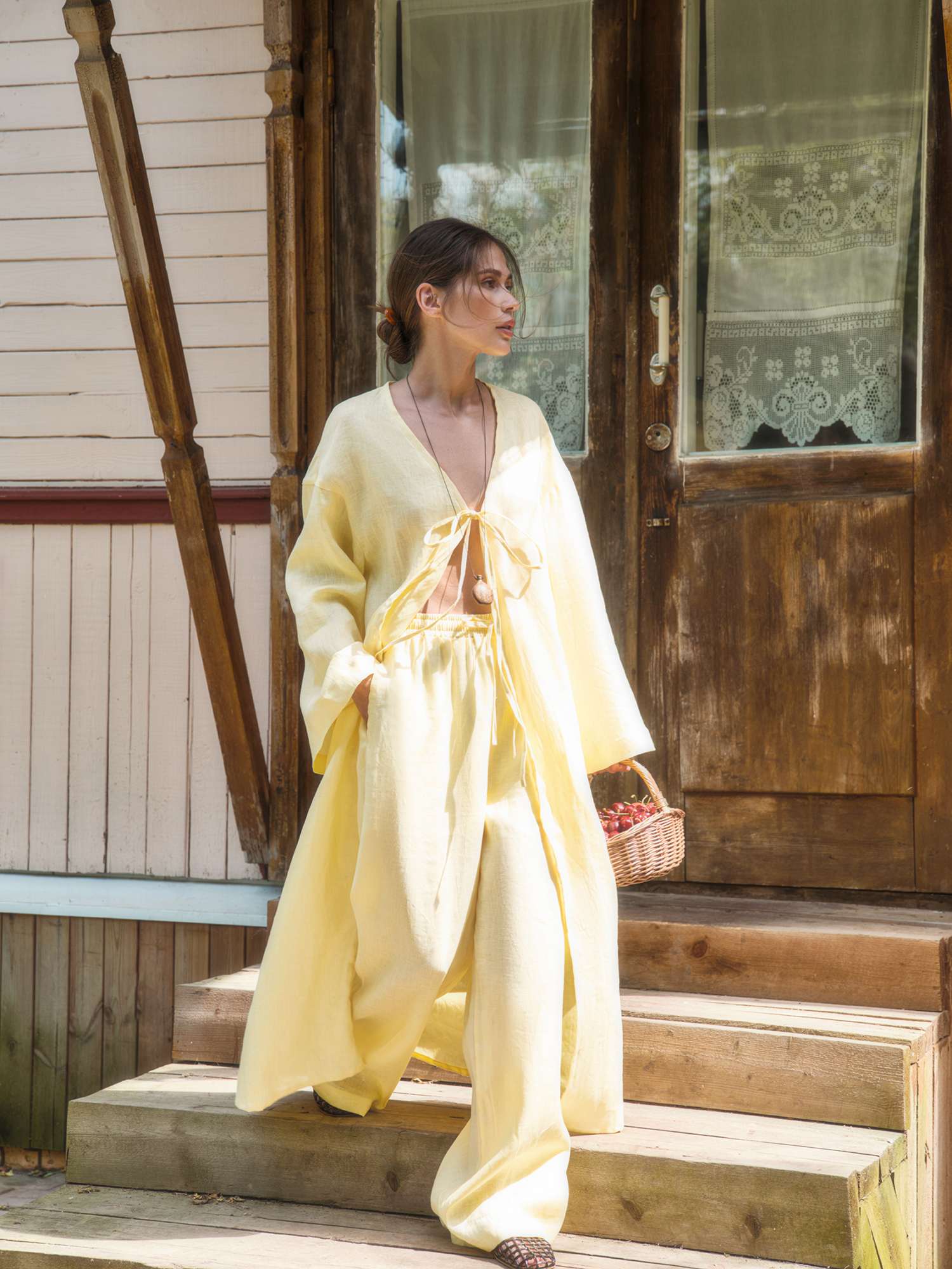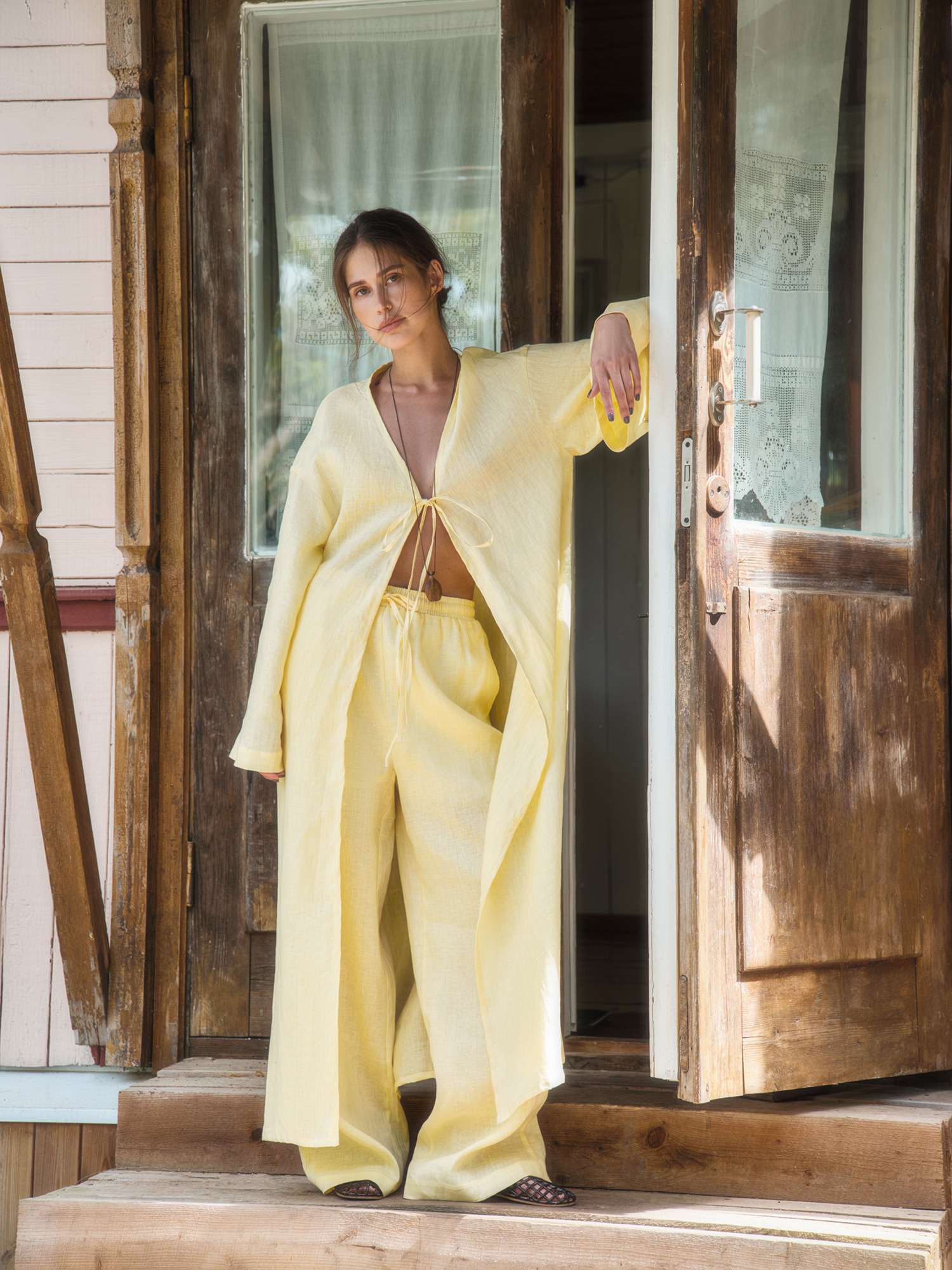 Новинка выполнена из премиального льна — одновременно легкого и плотного, полного воздуха и прохладного на ощупь.