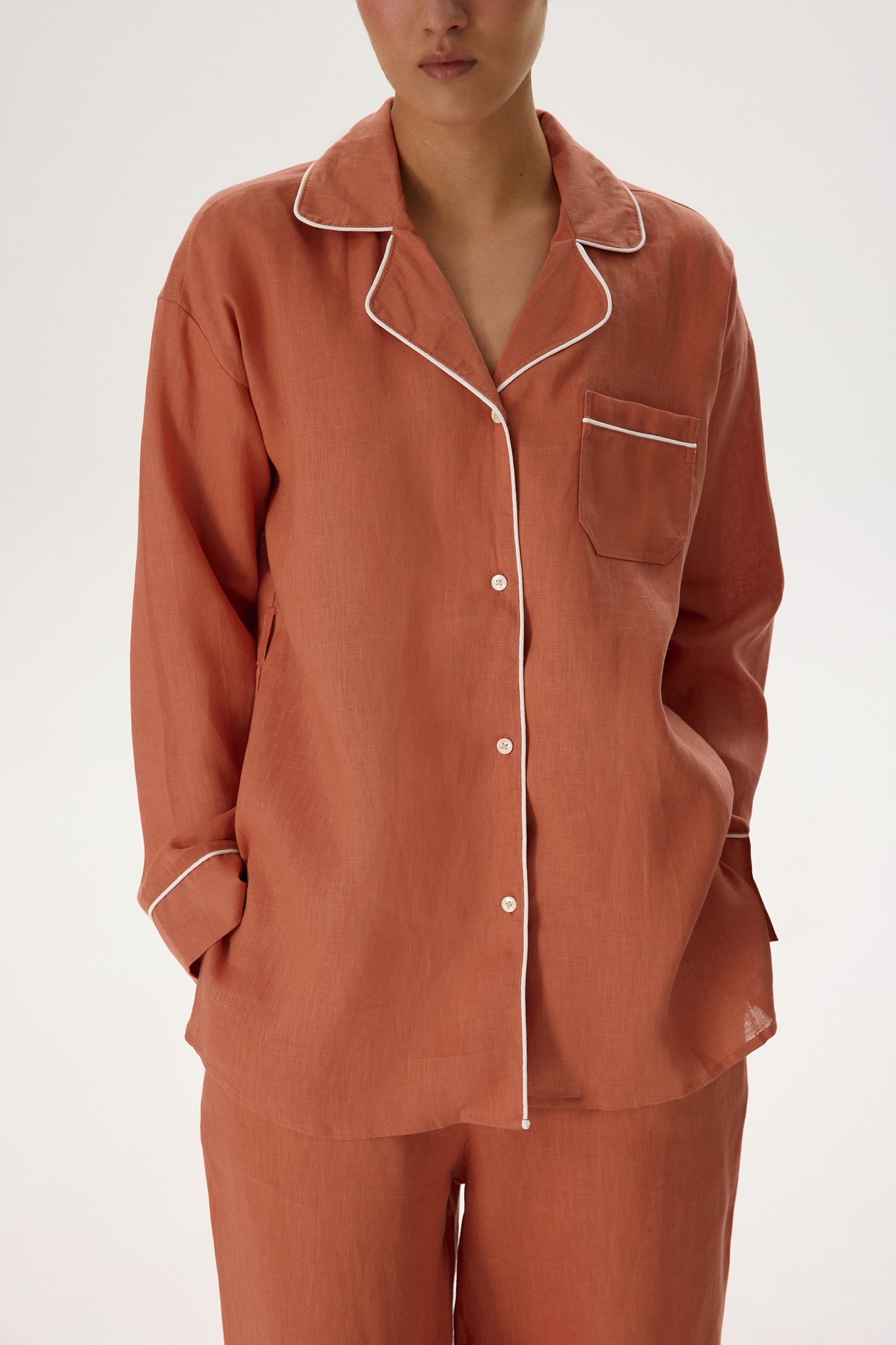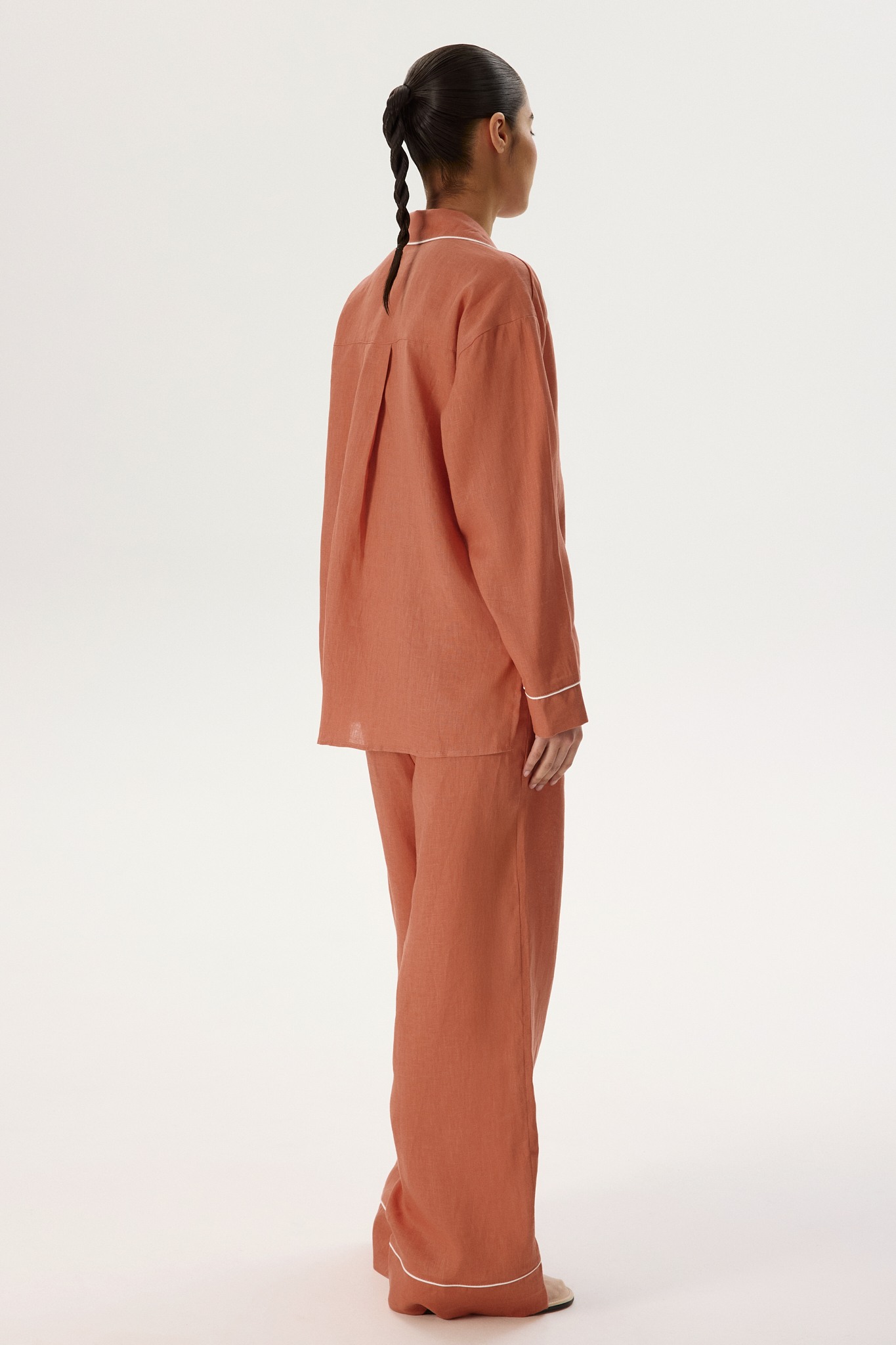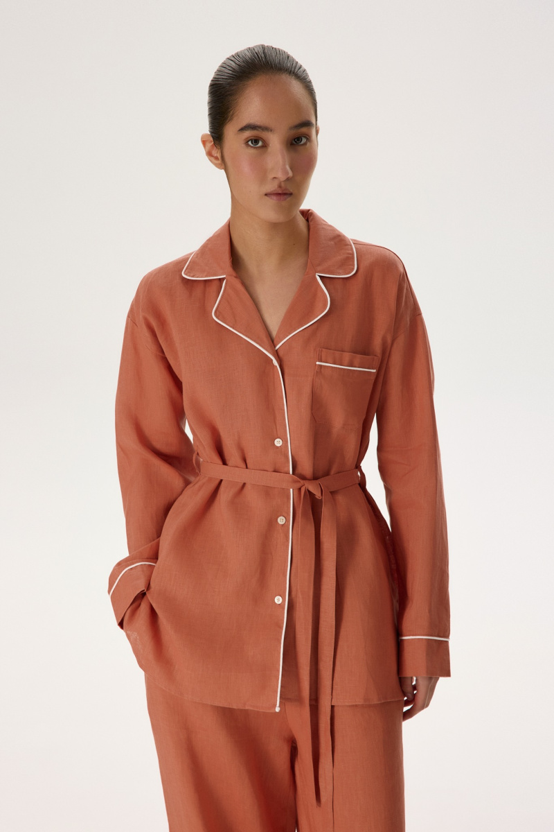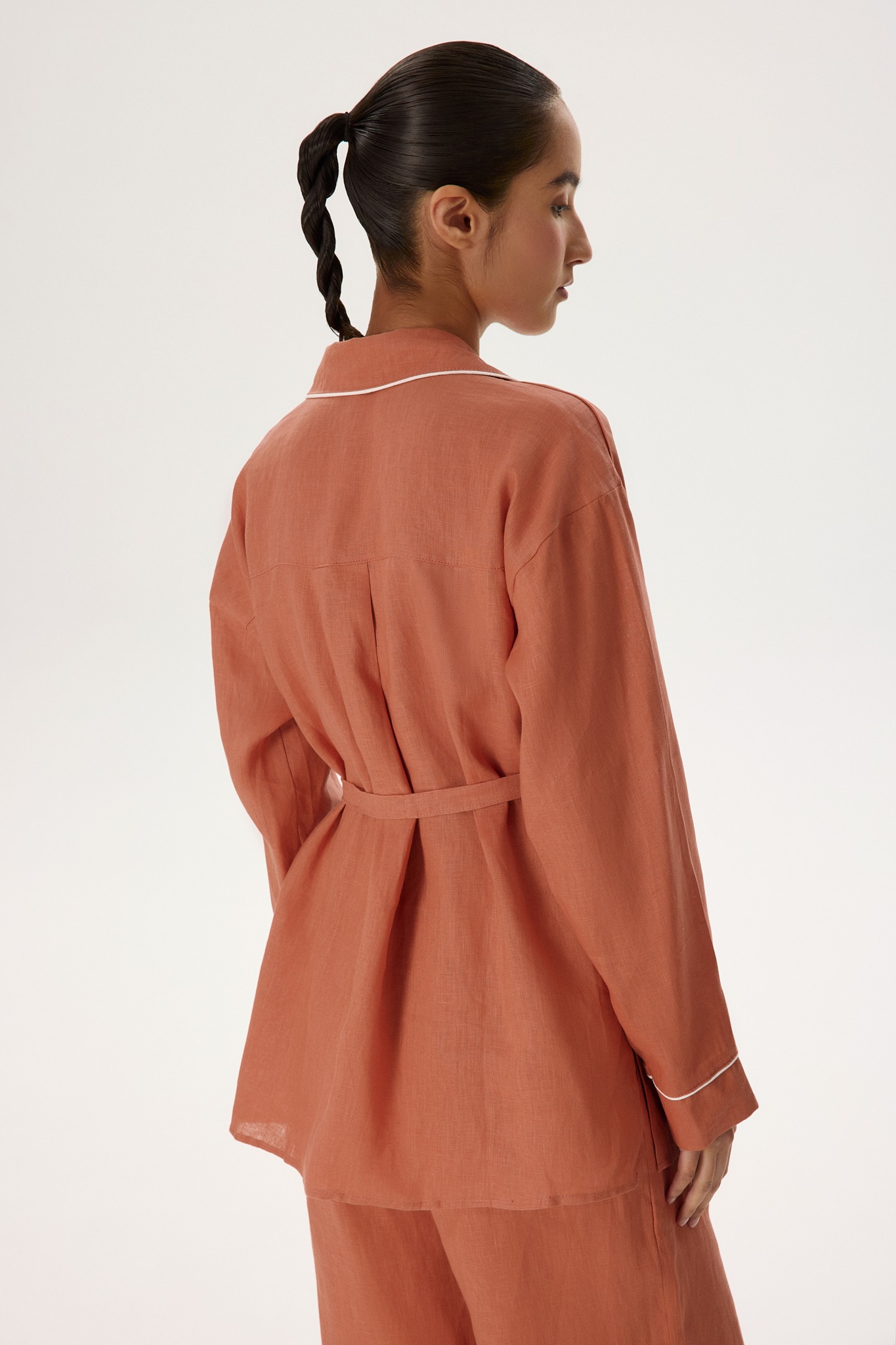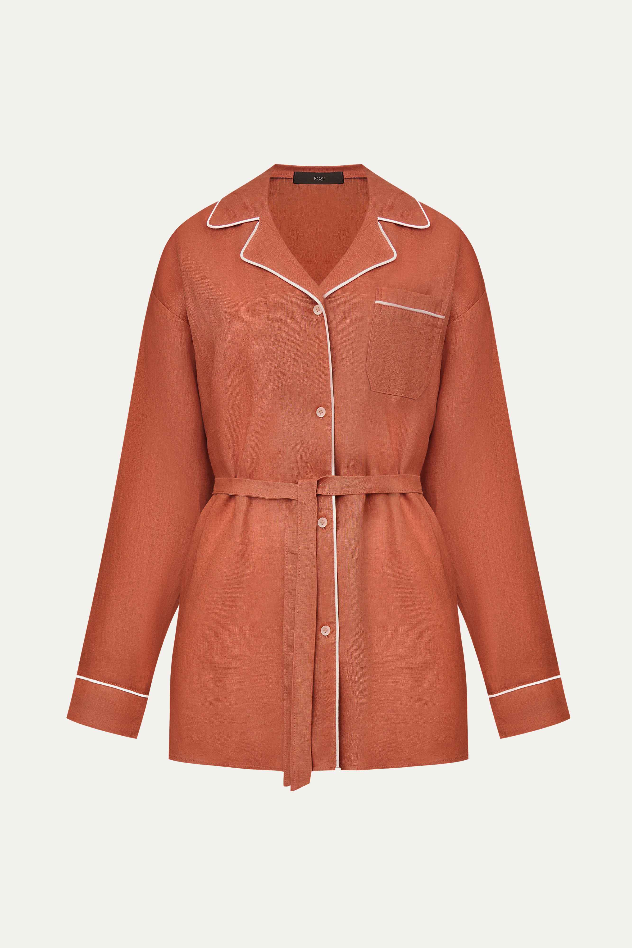Главный летний бестселлер ROSI — рубашка-кимоно из премиального 100% льна. Легкий и воздушный, он практически не ощущается на теле и позволяет коже дышать, а терракотовый оттенок подчеркивает натуральную фактуру материала.