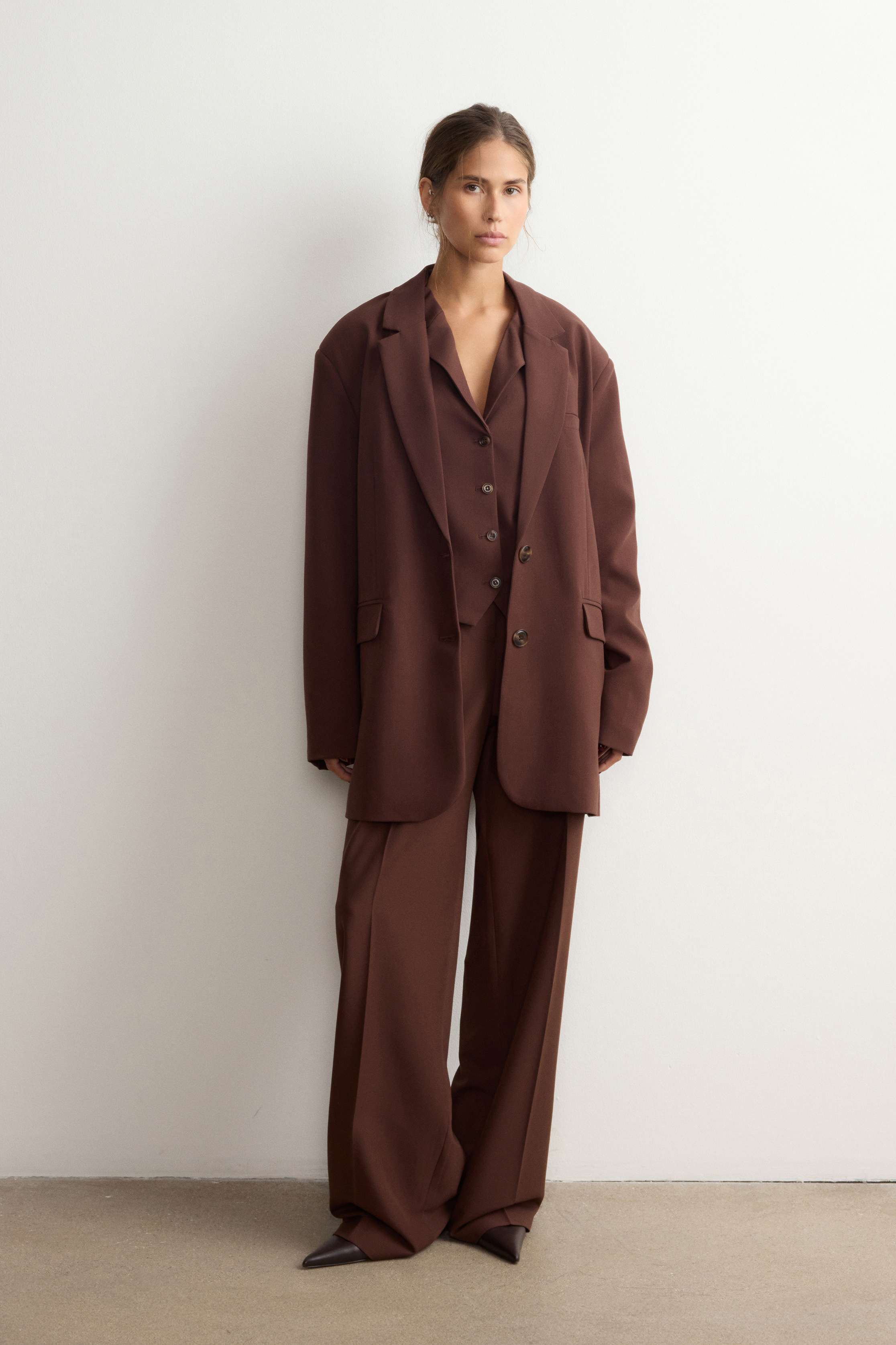 Однобортный жакет с широкими прямоугольными лацканами — классика, помноженная на функциональность и комфорт. Разработали жакет таким образом, чтобы он идеально сочетался с юбками и платьями длины мини и заканчивался на линии подола. Модель со шлицей, нагрудным карманом и боковыми клапанами застегивается роговыми пуговицами. Выполнен из костюмной ткани на основе шелковистой вискозы с мягким хлопковым подкладом.