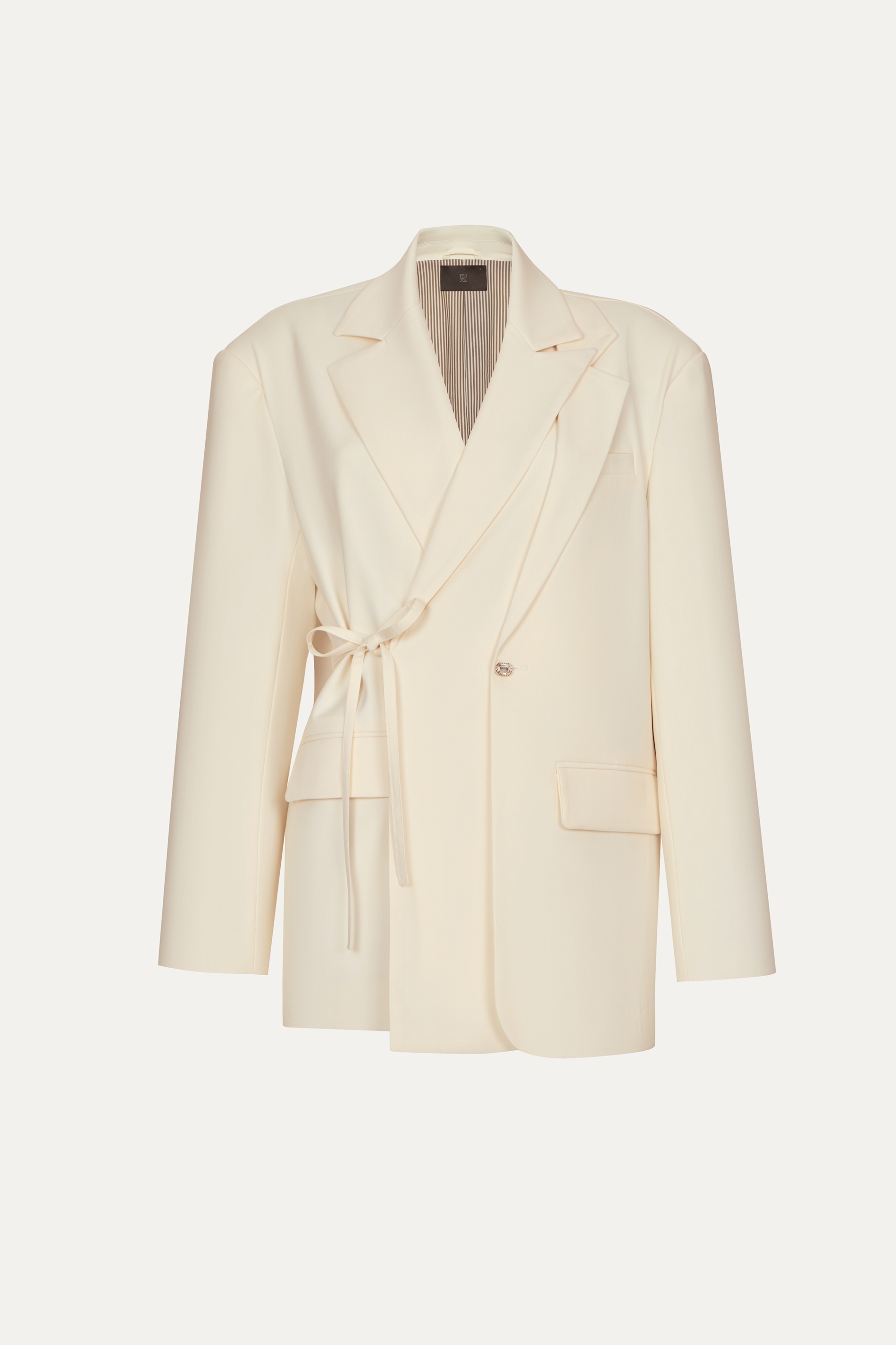 В этой модели мы пересмотрели классику, взяв за основу базовый жакет и дополнив его двойным лацканом и завязками на талии. Простую пуговицу мы заменили кристаллом, чтобы подчеркнуть утонченный характер новинки.
