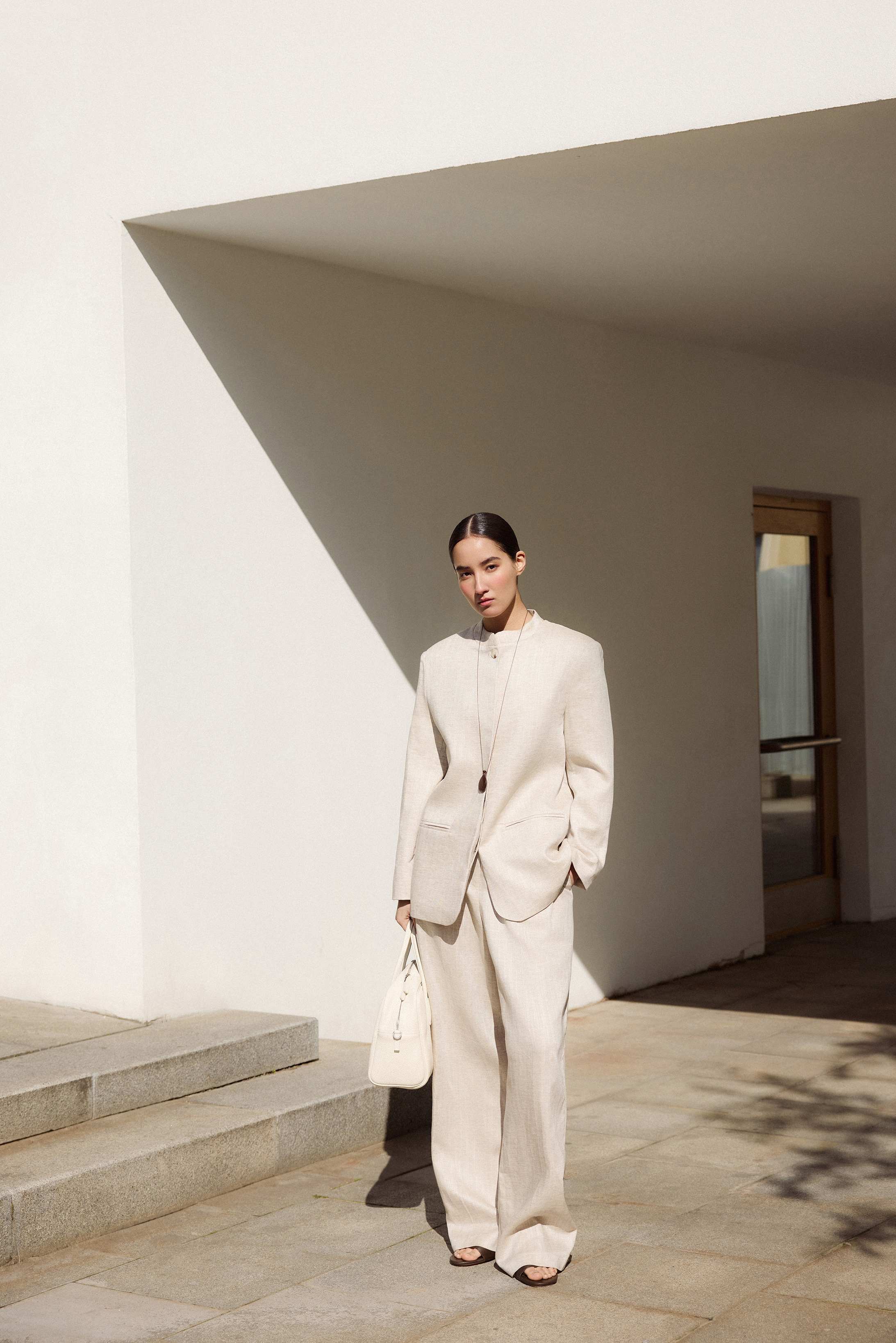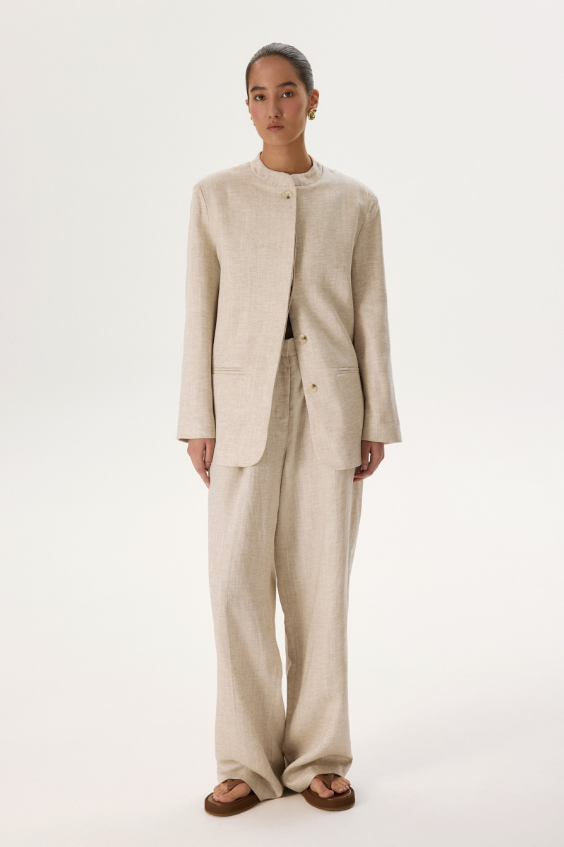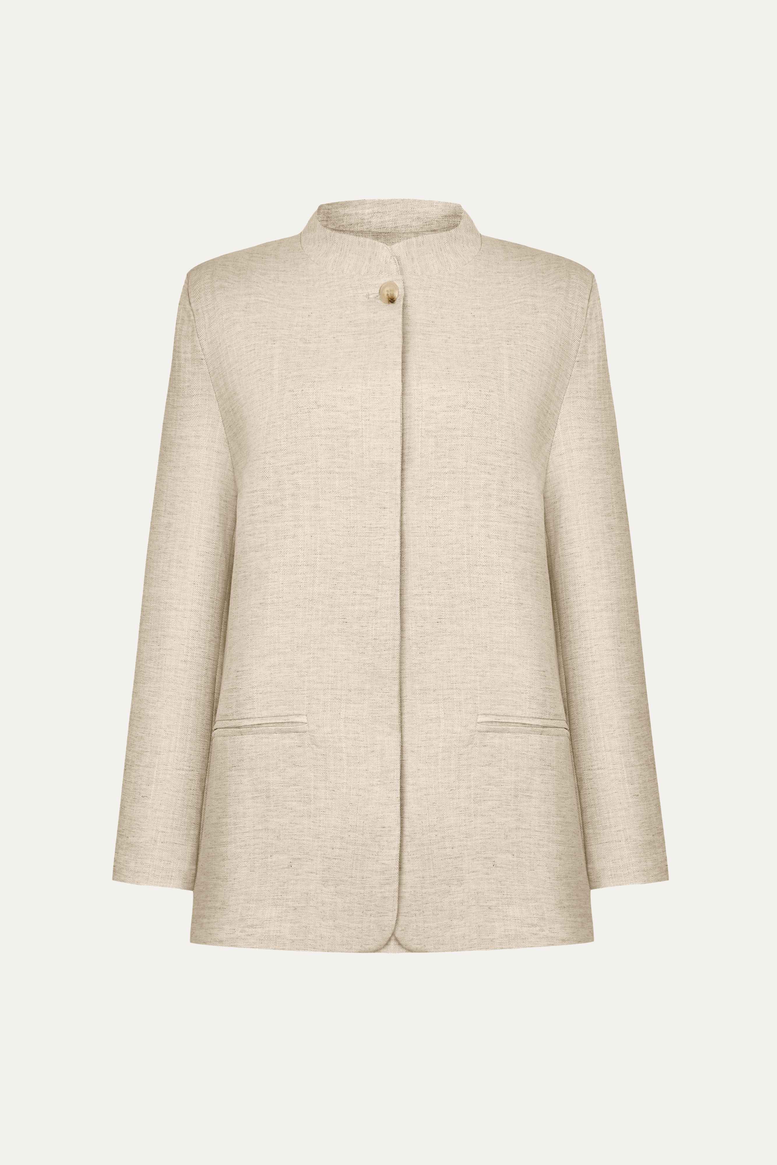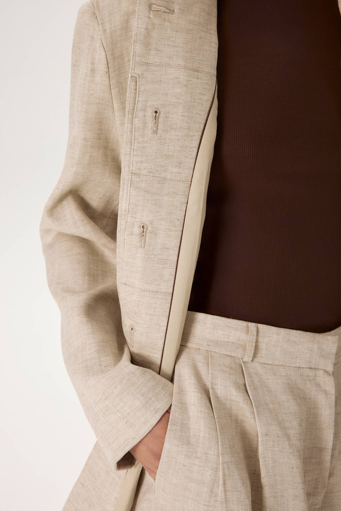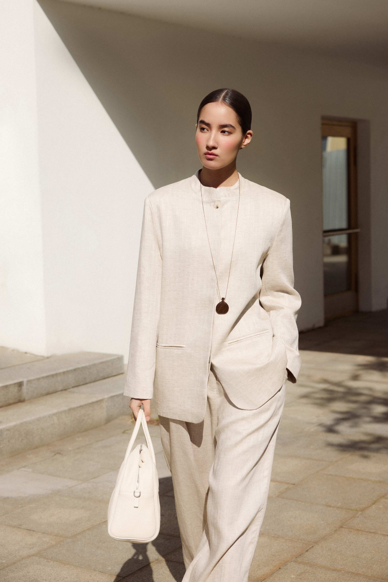 Название жакета Priroda отсылает к натуральному цвету льна — ставшему культовым в коллекции ROSI оттенку экрю, иными словами, мягкому серо-бежевому тону.