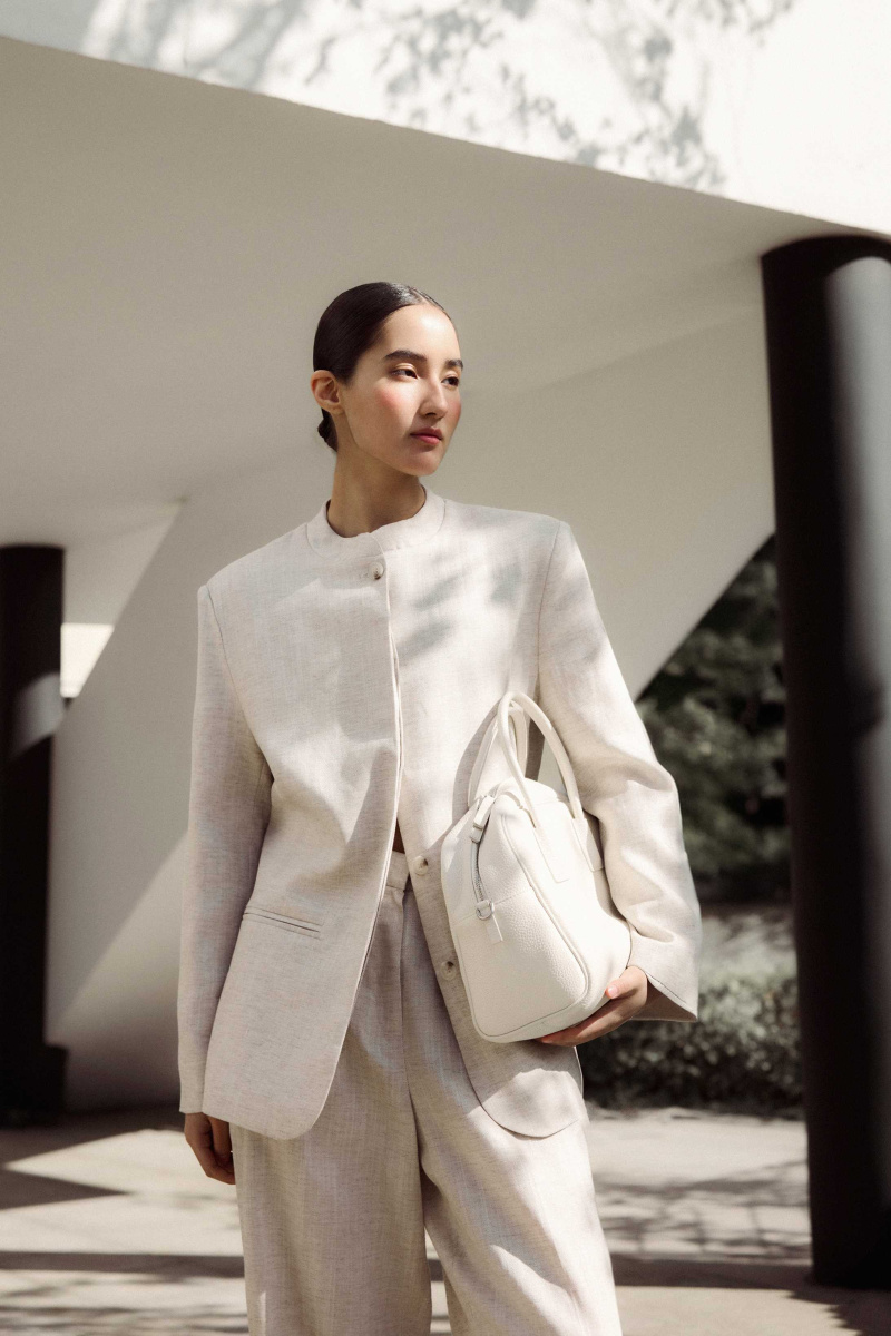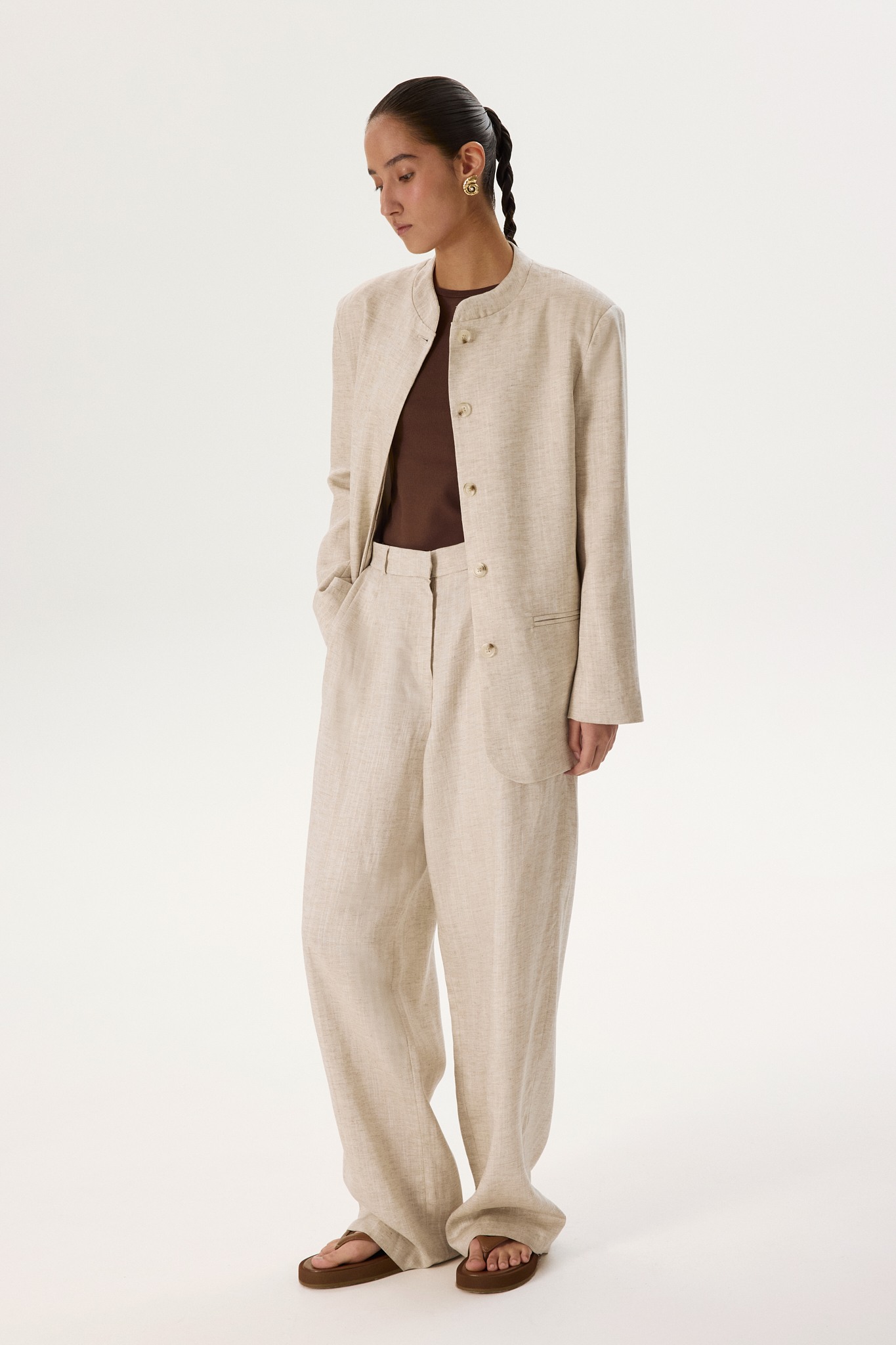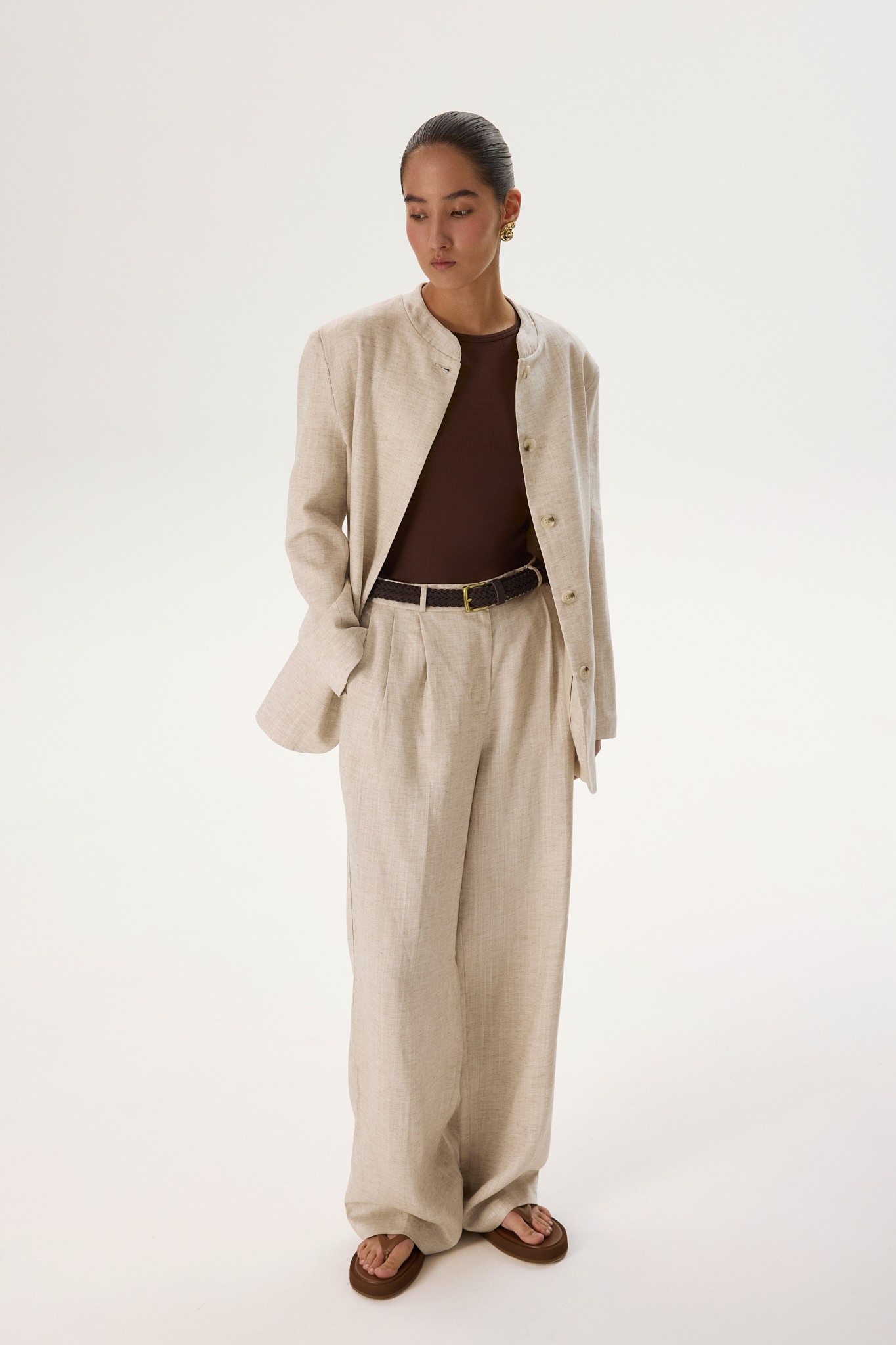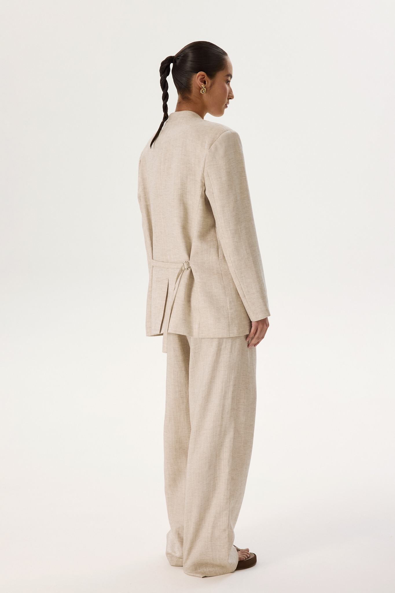 Название жакета Priroda отсылает к натуральному цвету льна — ставшему культовым в коллекции ROSI оттенку экрю, иными словами, мягкому серо-бежевому тону.