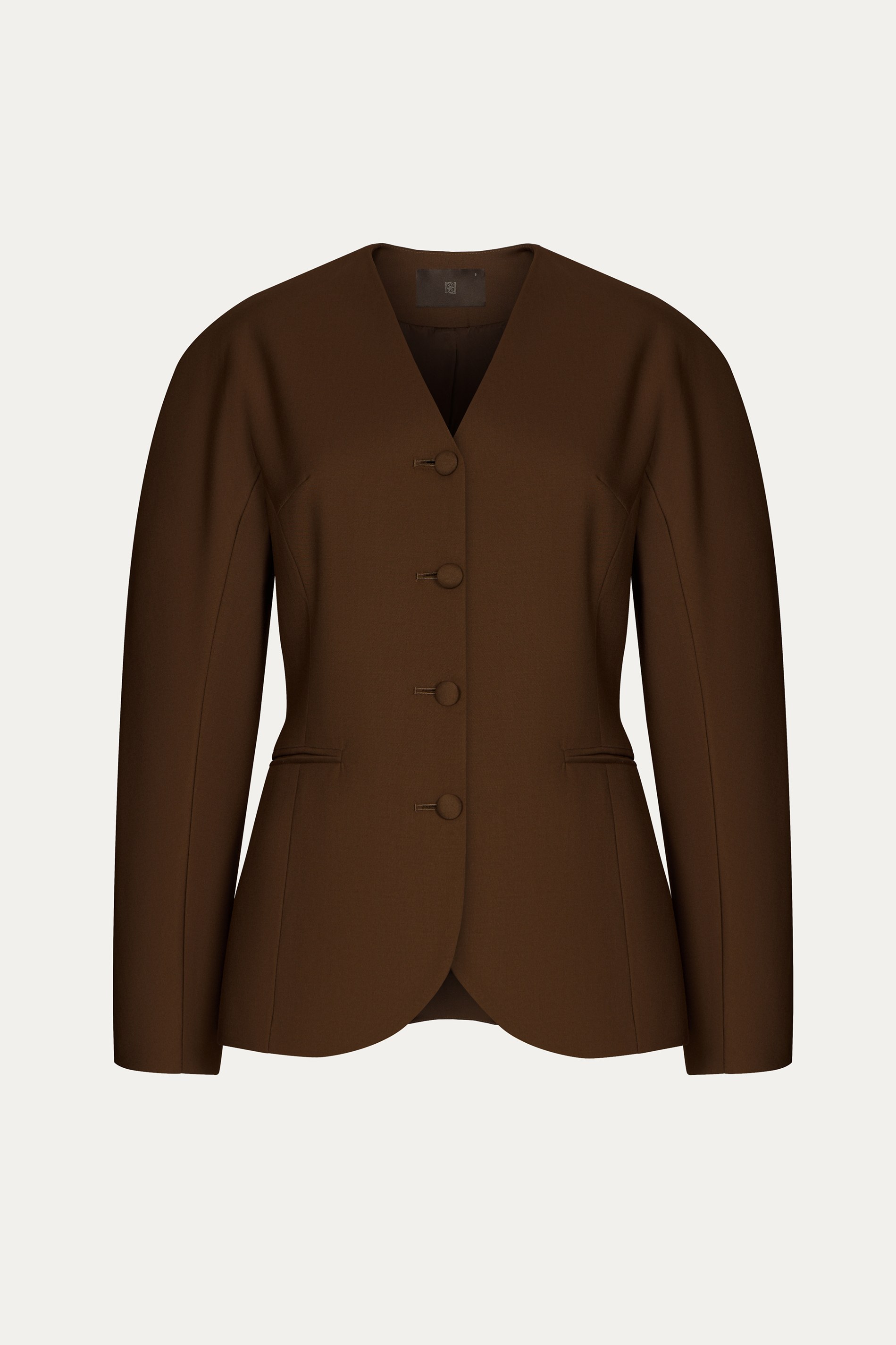 Главные особенности этой модели — объемный рукав и приталенный крой. У жакета нет лацканов, а его полы скругленные, что дополнительно подчеркивает мягкий и утонченный характер изделия.