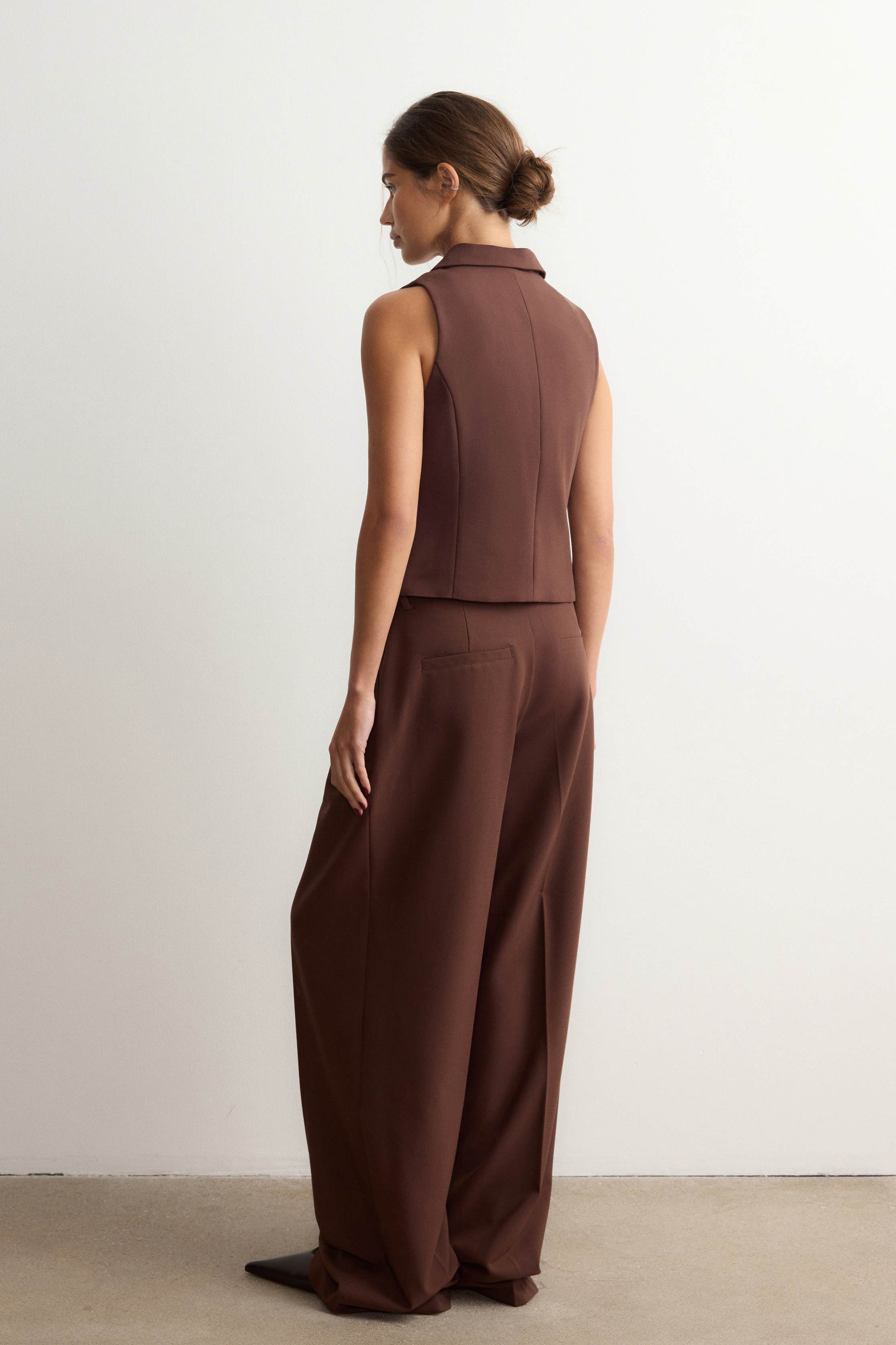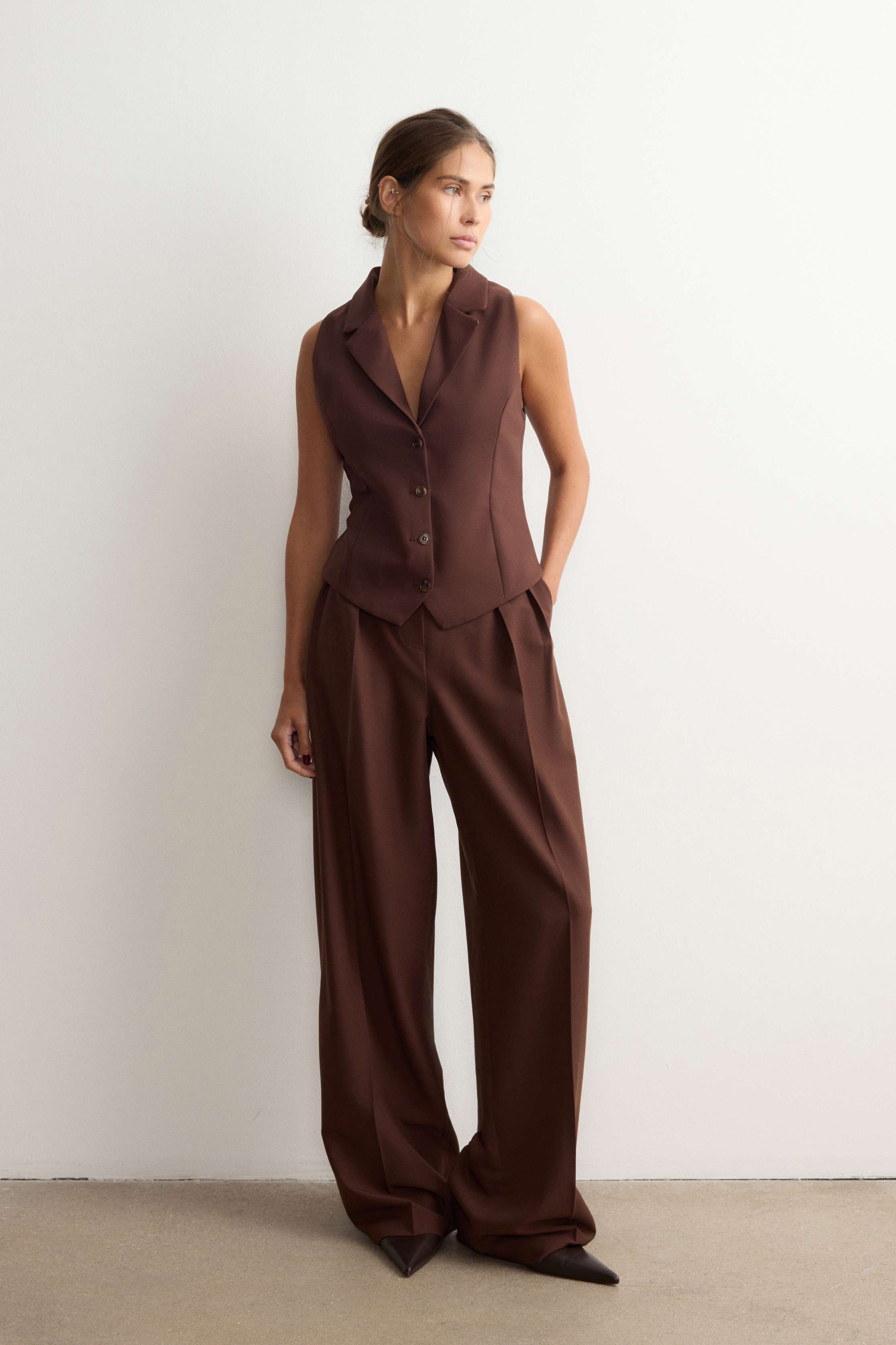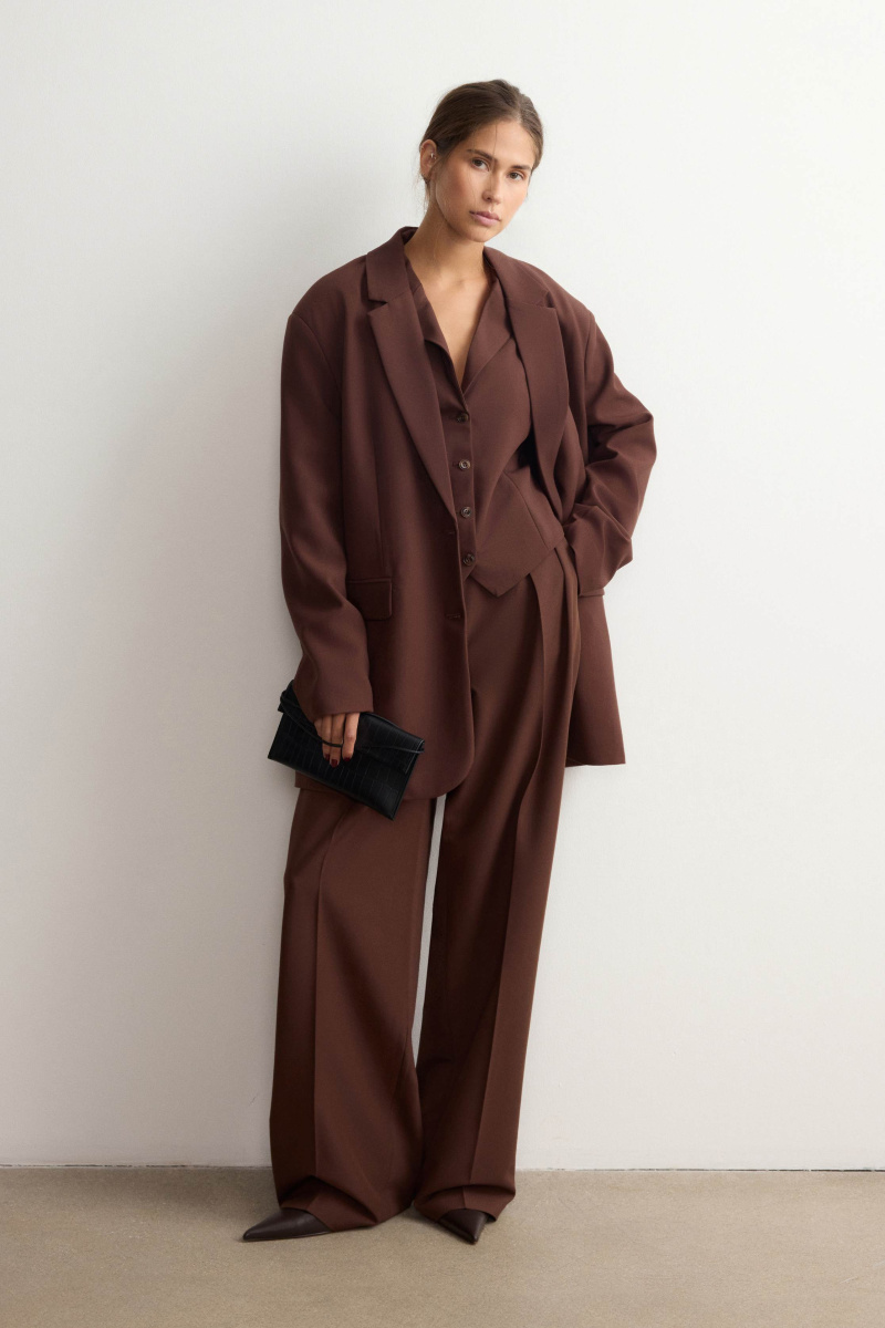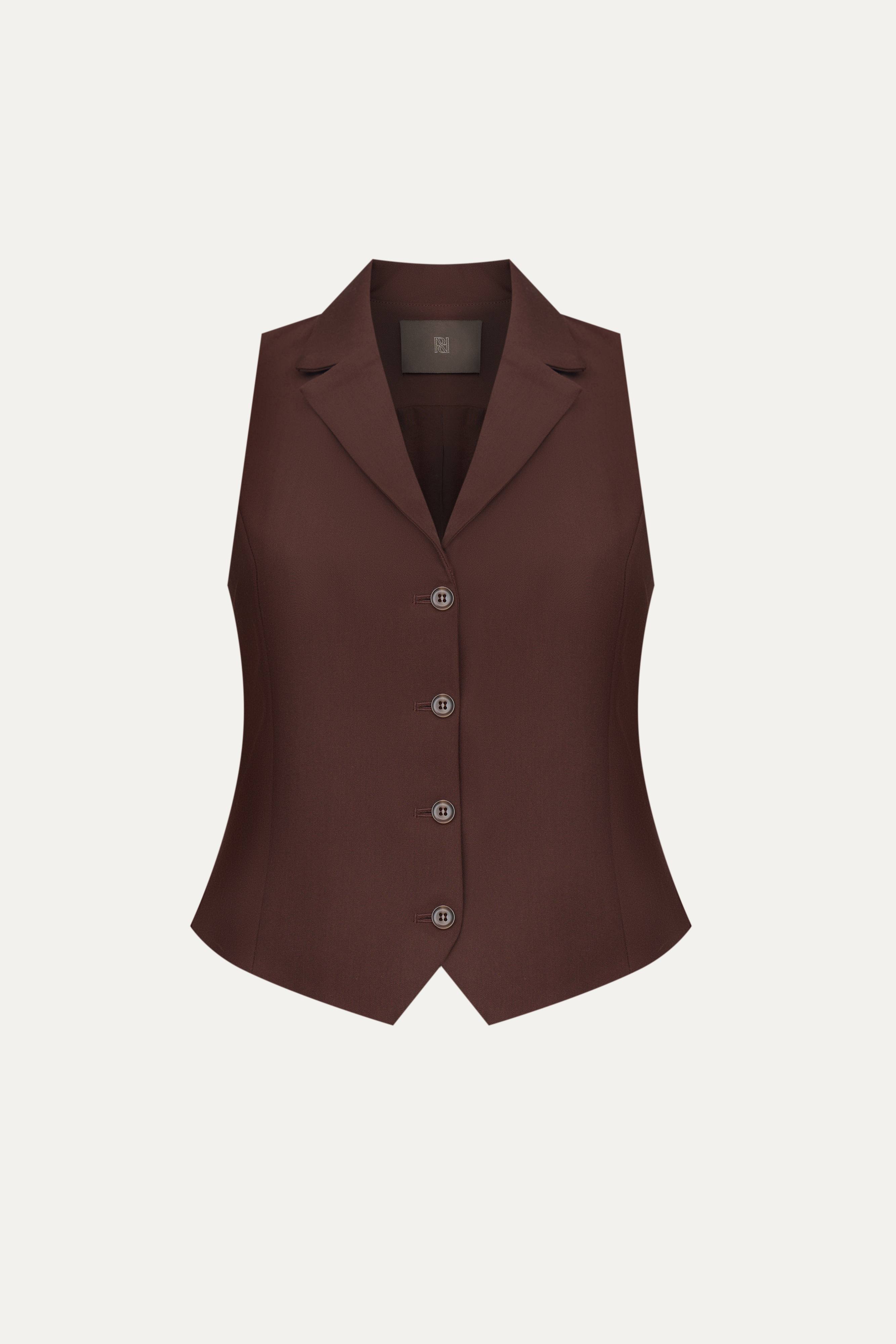 Альтернатива базовым жилетам в коллекции ROSI — модель с аккуратными лацканами. Подчеркнет фигуру с помощью приталенного кроя и рельефных швов, визуально вытягивающих силуэт, и соберет все взгляды. Выполнен из костюмной ткани на основе шелковистой вискозы с мягким хлопковым подкладом.
