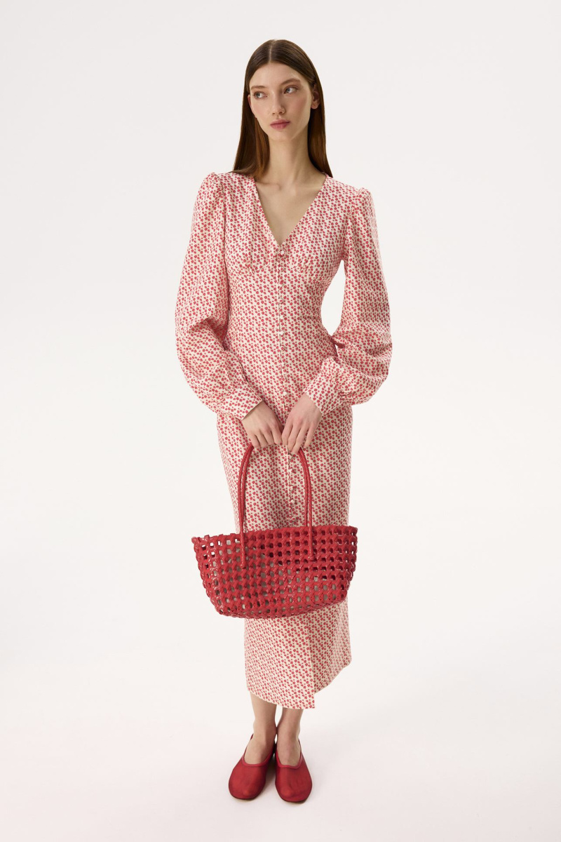 Сочетайте платье с плетеной сумкой или сумкой-корзиной с льняным подкладом из коллекции ROSI.