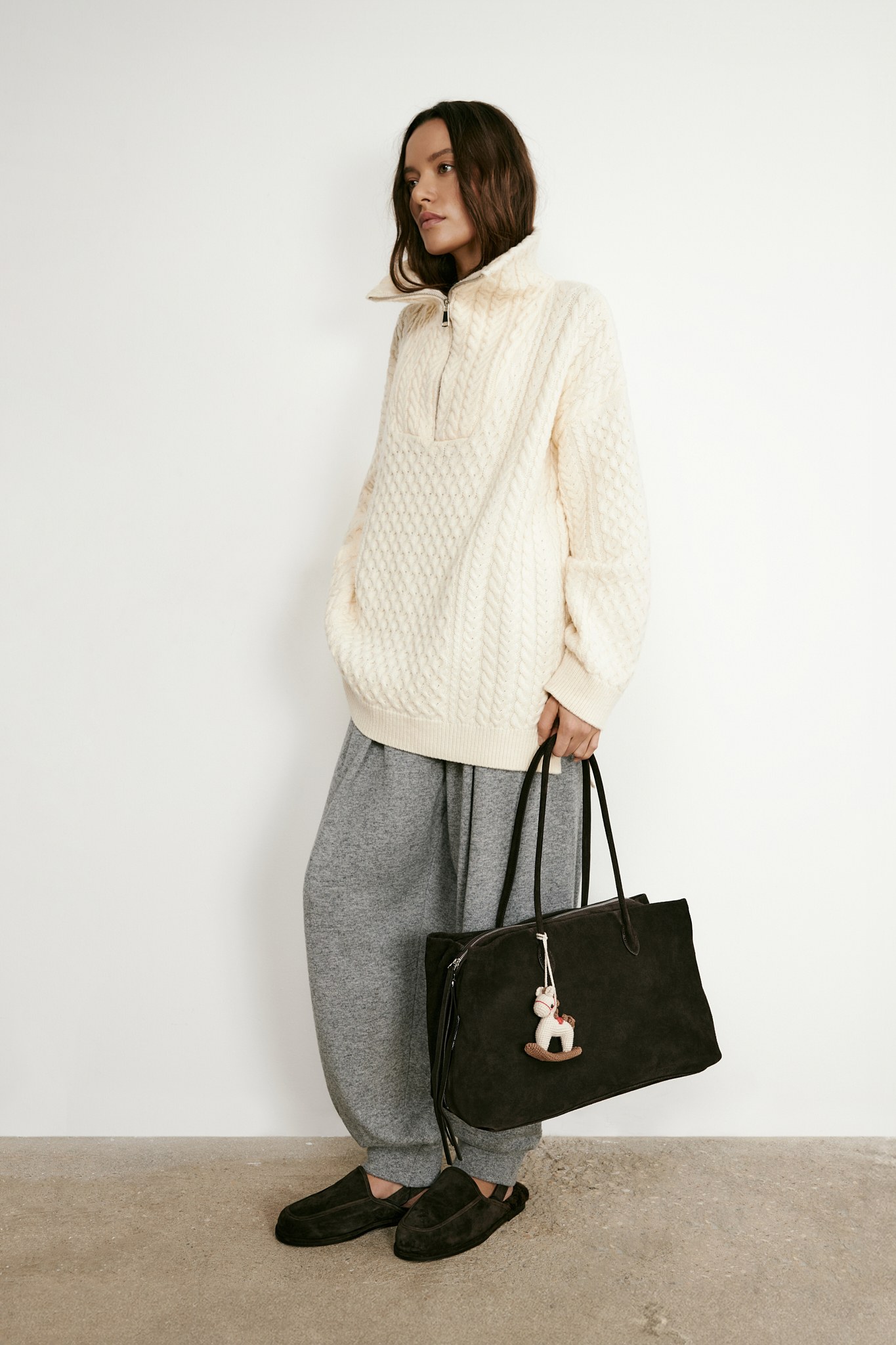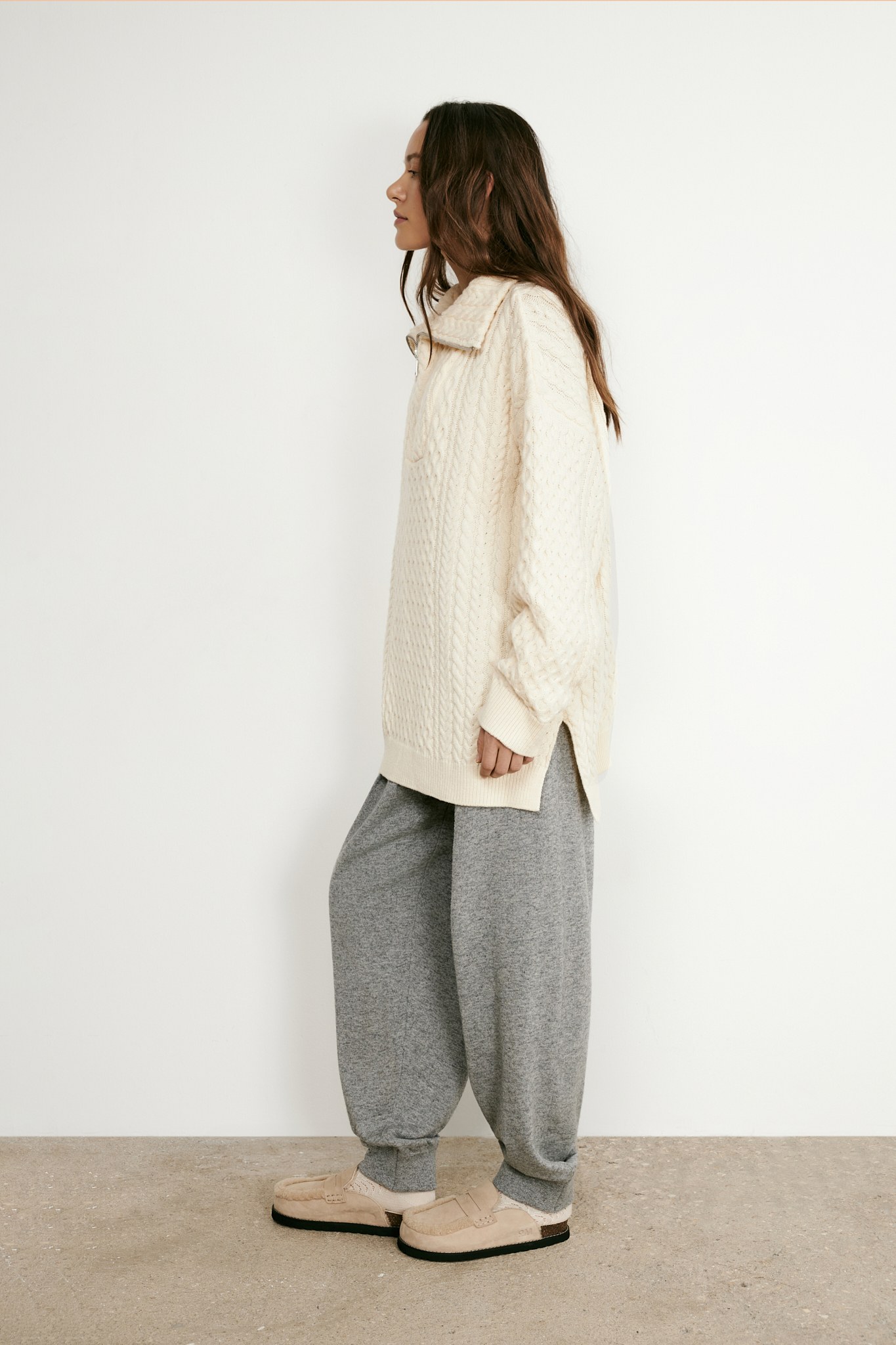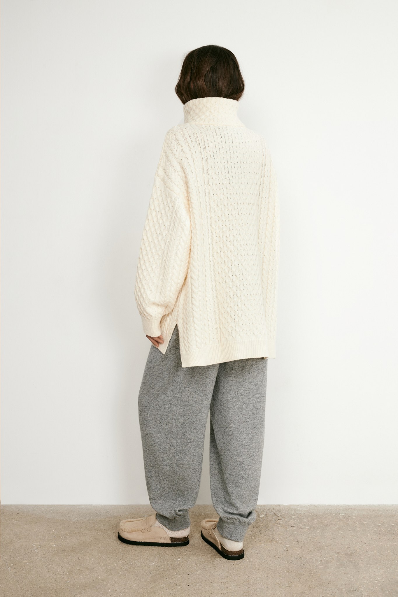 1. Новинку связали арановым узором из мягкой пряжи на основе мериносовой шерсти с добавлением эластичных и прочных волокон акрила и нейлона.