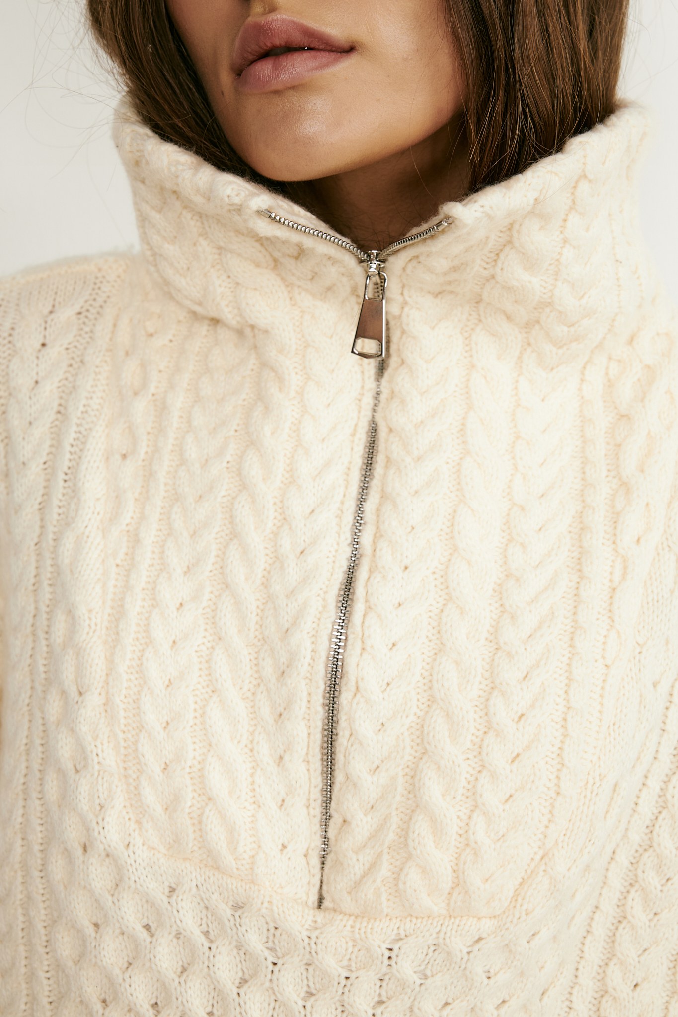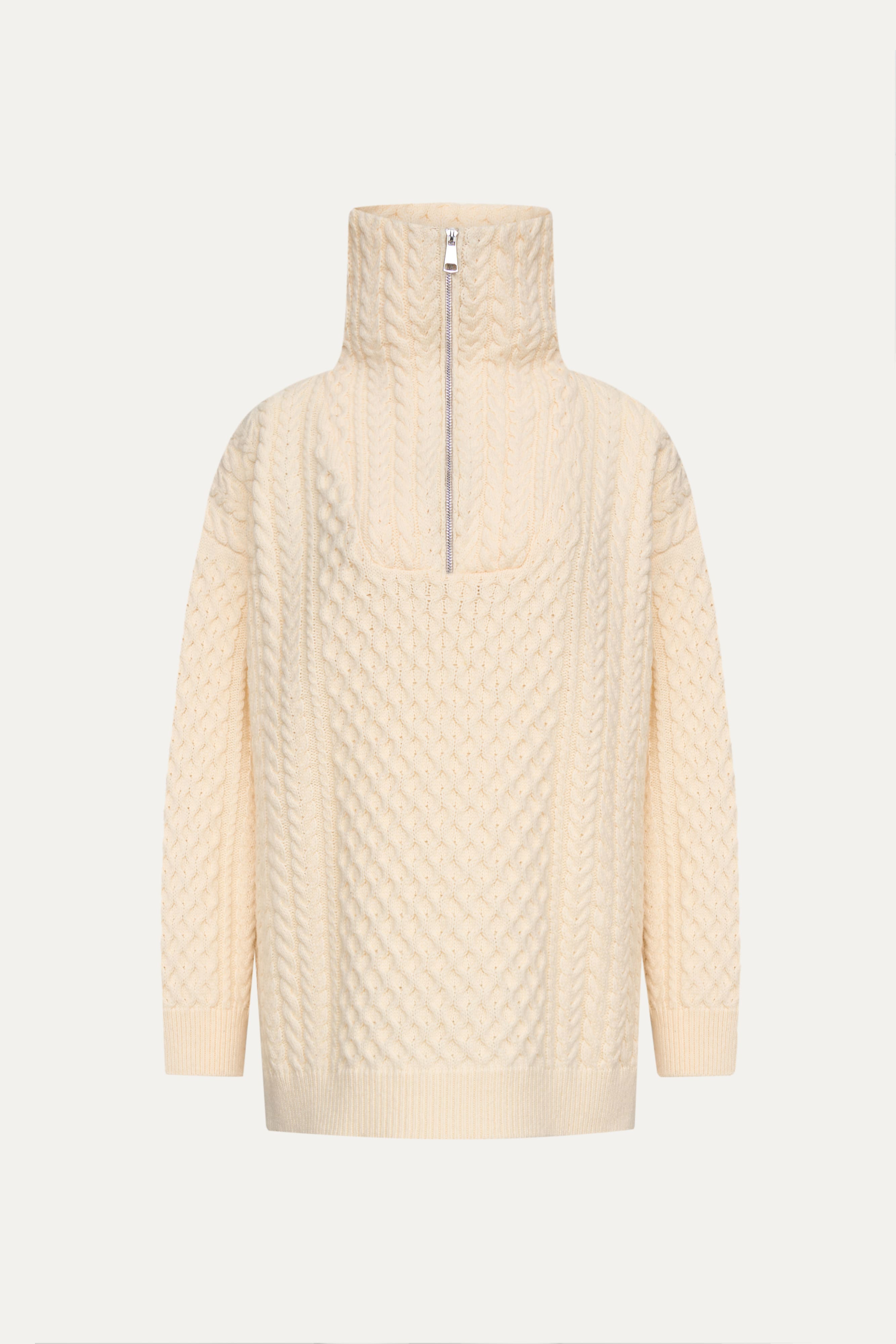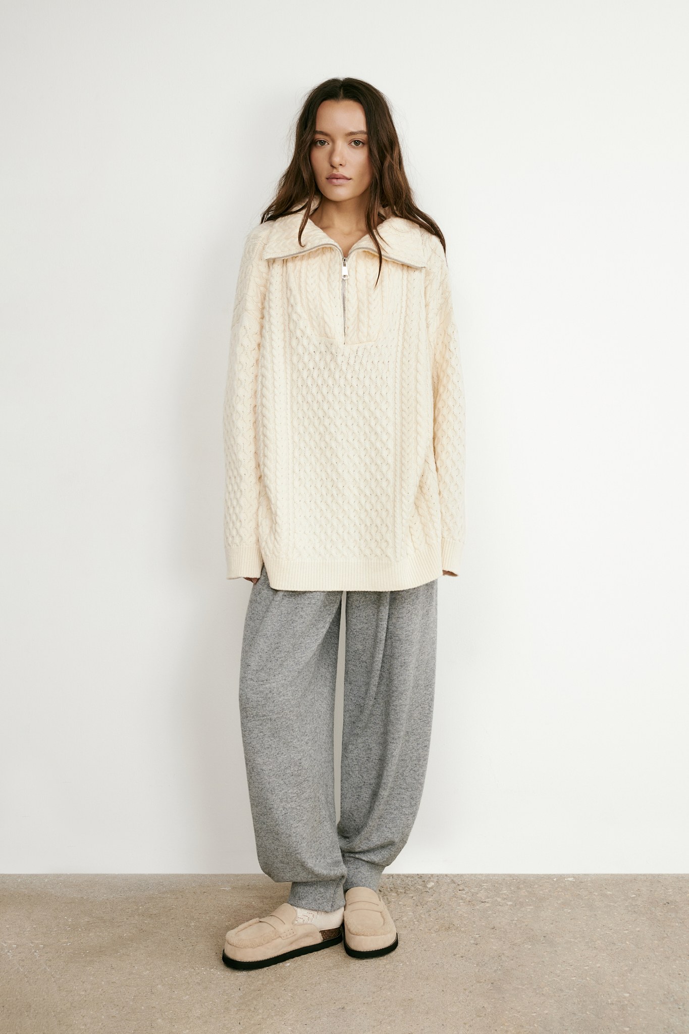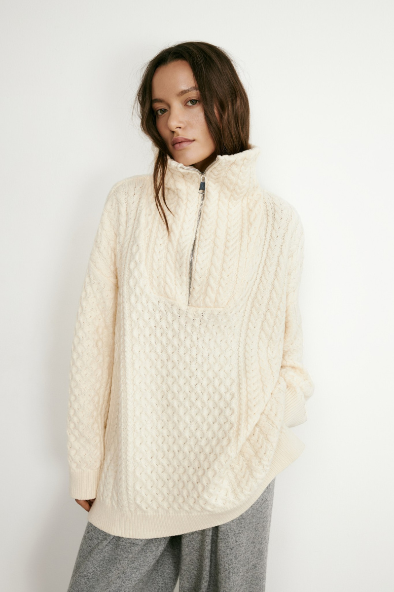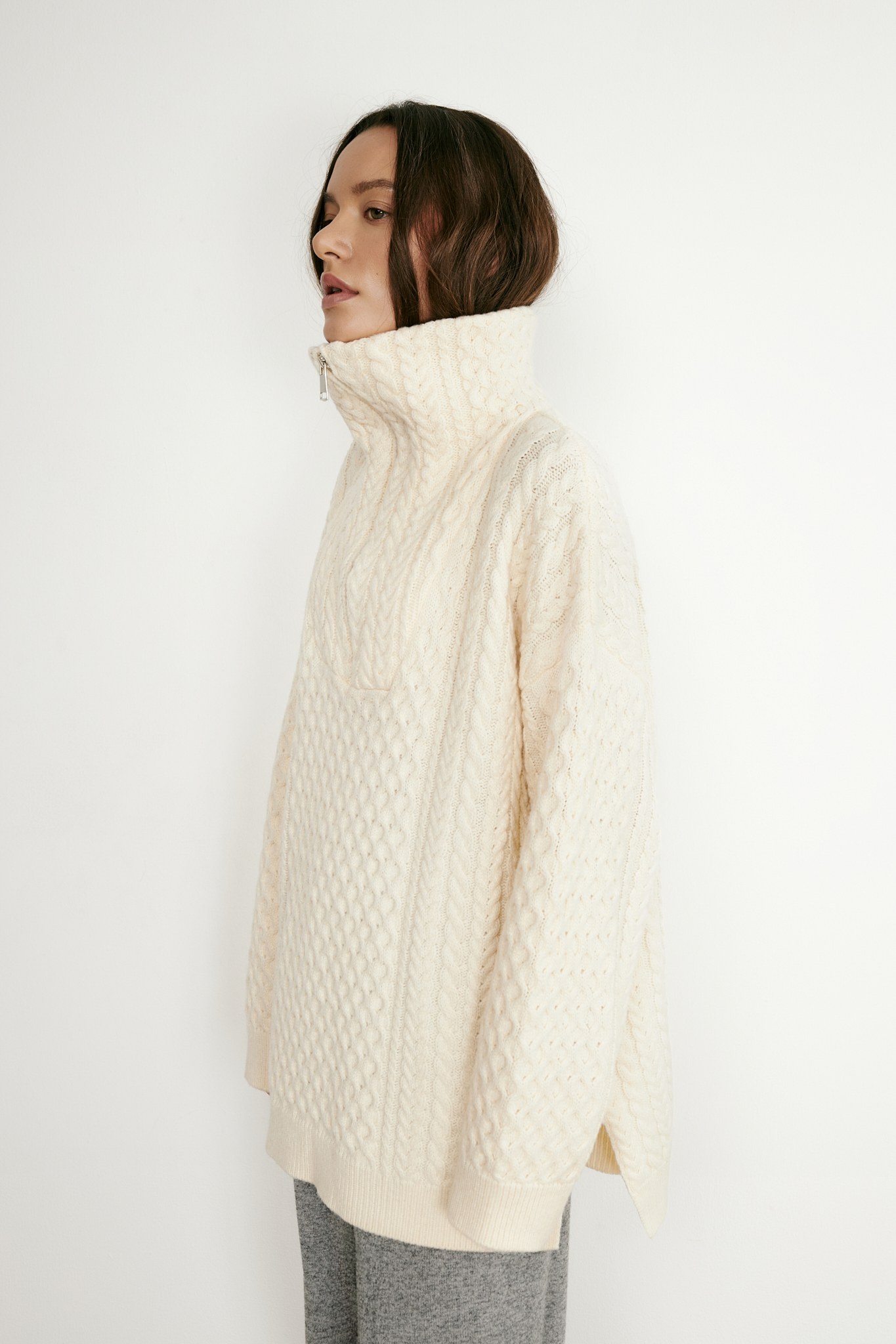 Анорак из мериносовой шерсти с выразительным арановым узором — самая необходимая вещь для русской зимы: в нем не придется пережидать морозы дома.