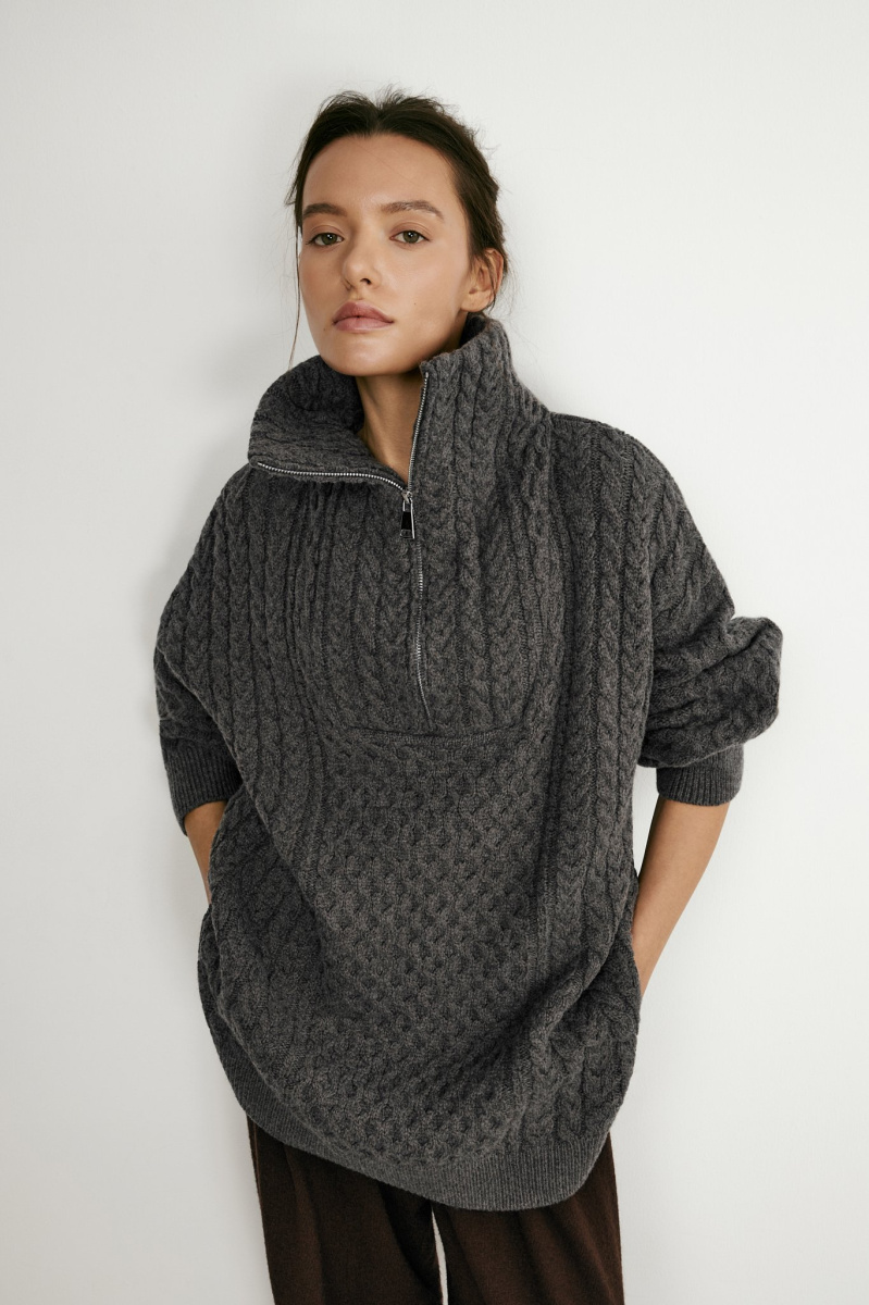 2. Благодаря свободному крою со спущенной линией плеч и разрезами по бокам изделие окутает уютом, а воротник-стойка на молнии сделает его незаменимым для зимних забав: долгих прогулок по снежному лесу, катания на коньках и лыжах.