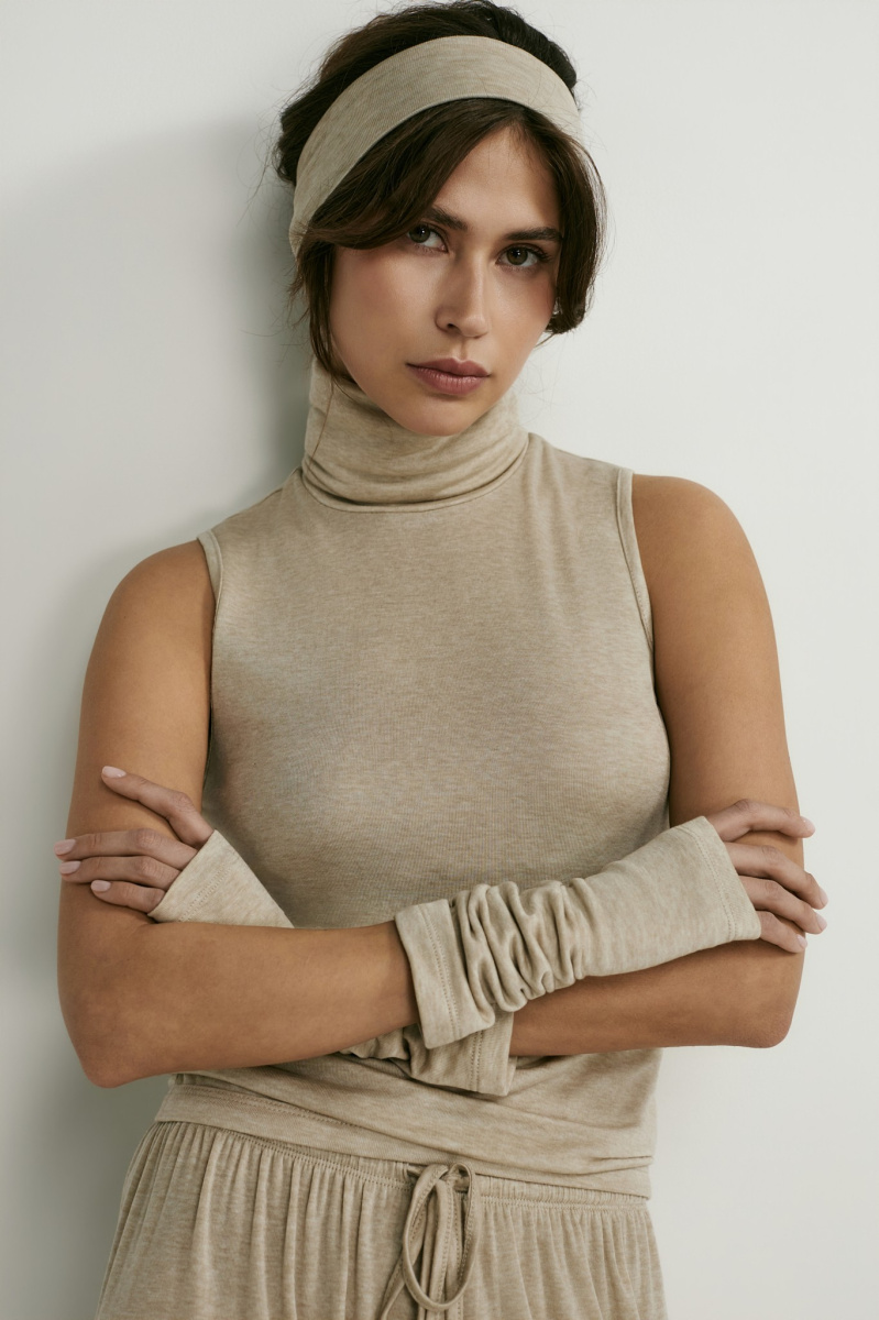 Комплект: митенки и повязка на голову из тонкого трикотажа