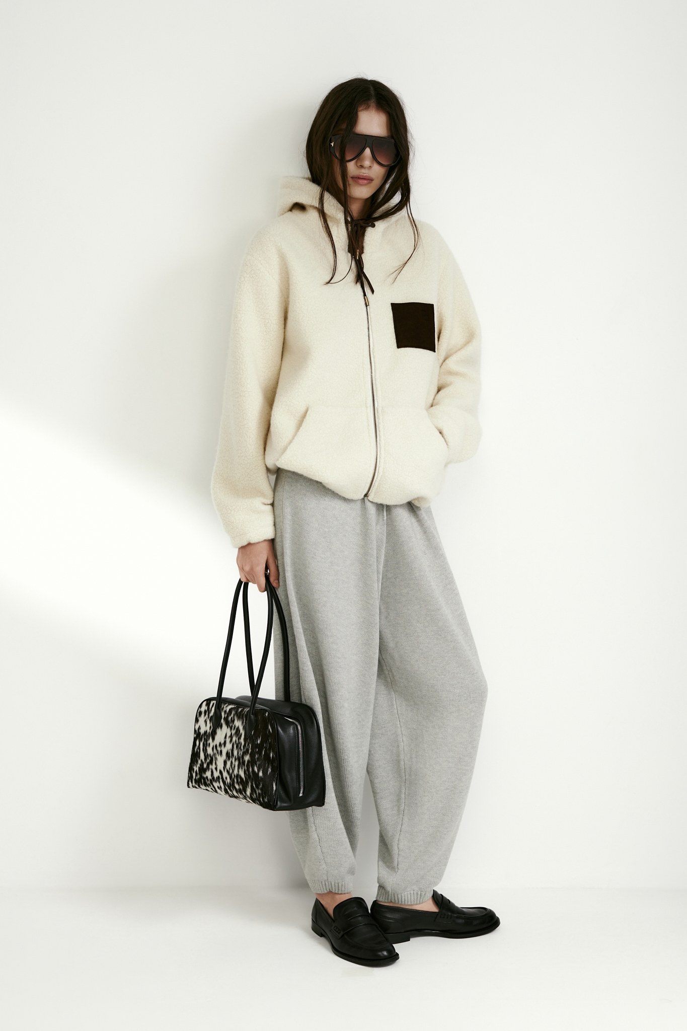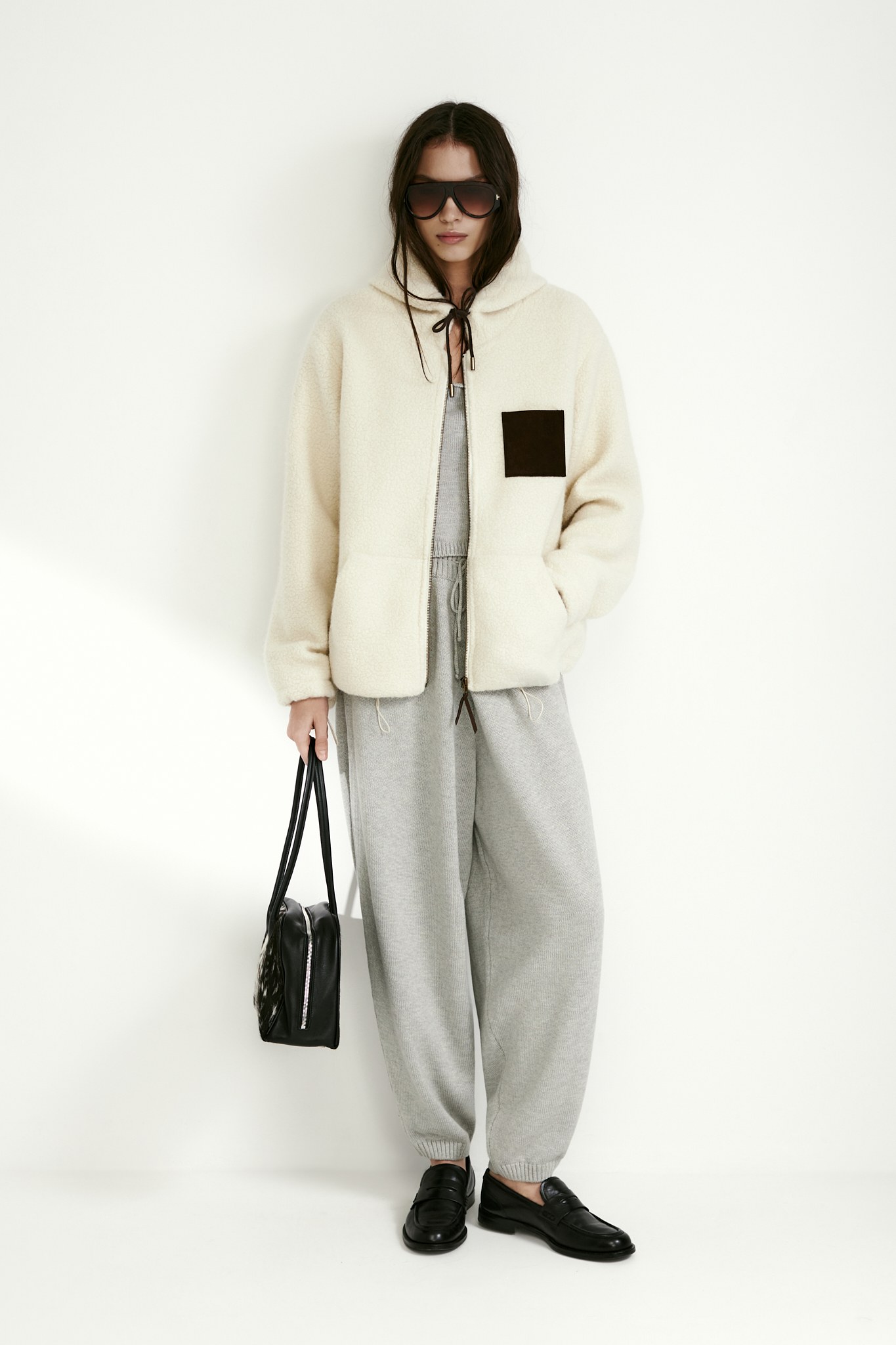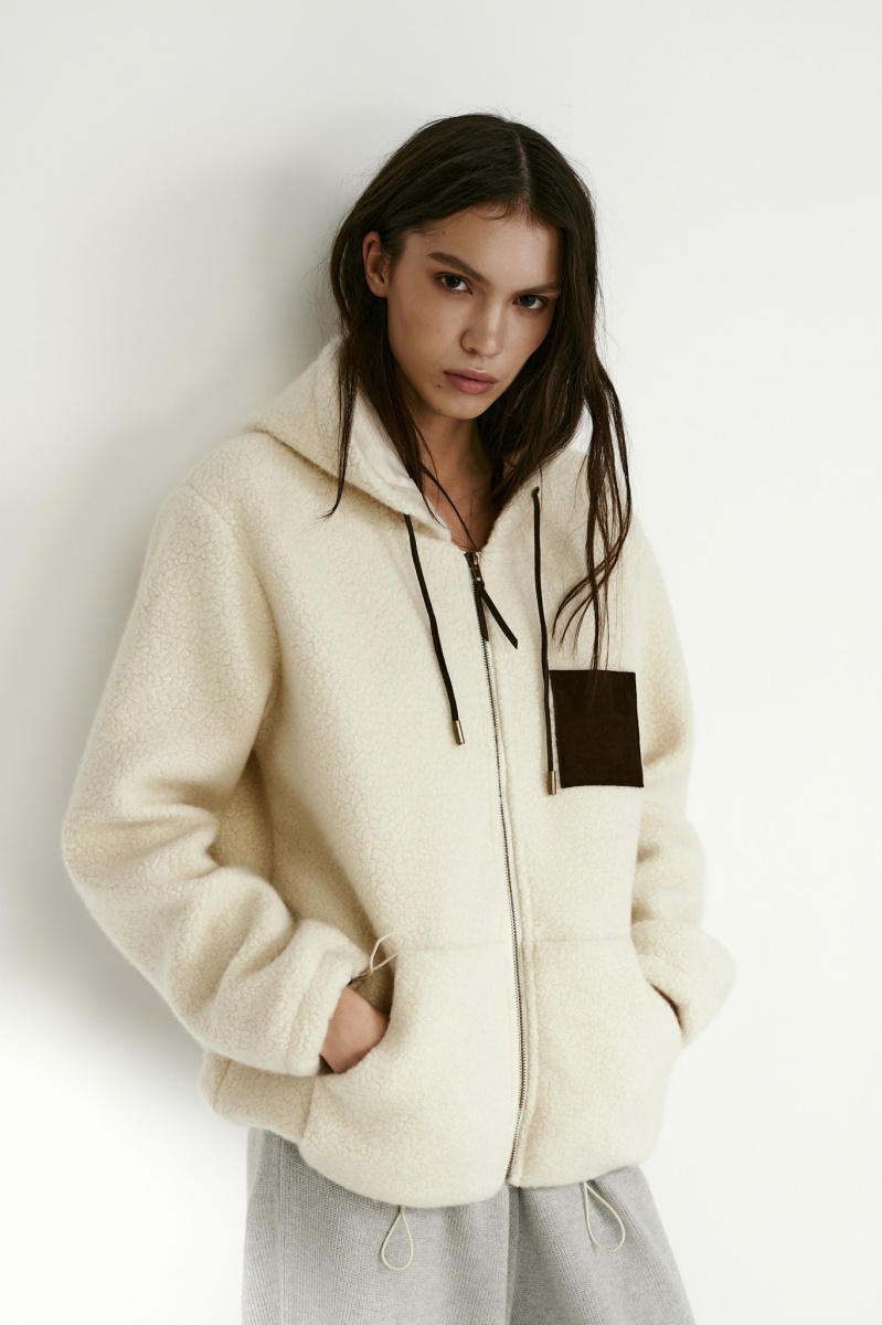 Куртка на молнии из мягкой шерпы согреет в прохладные дни и сделает образ уютным.