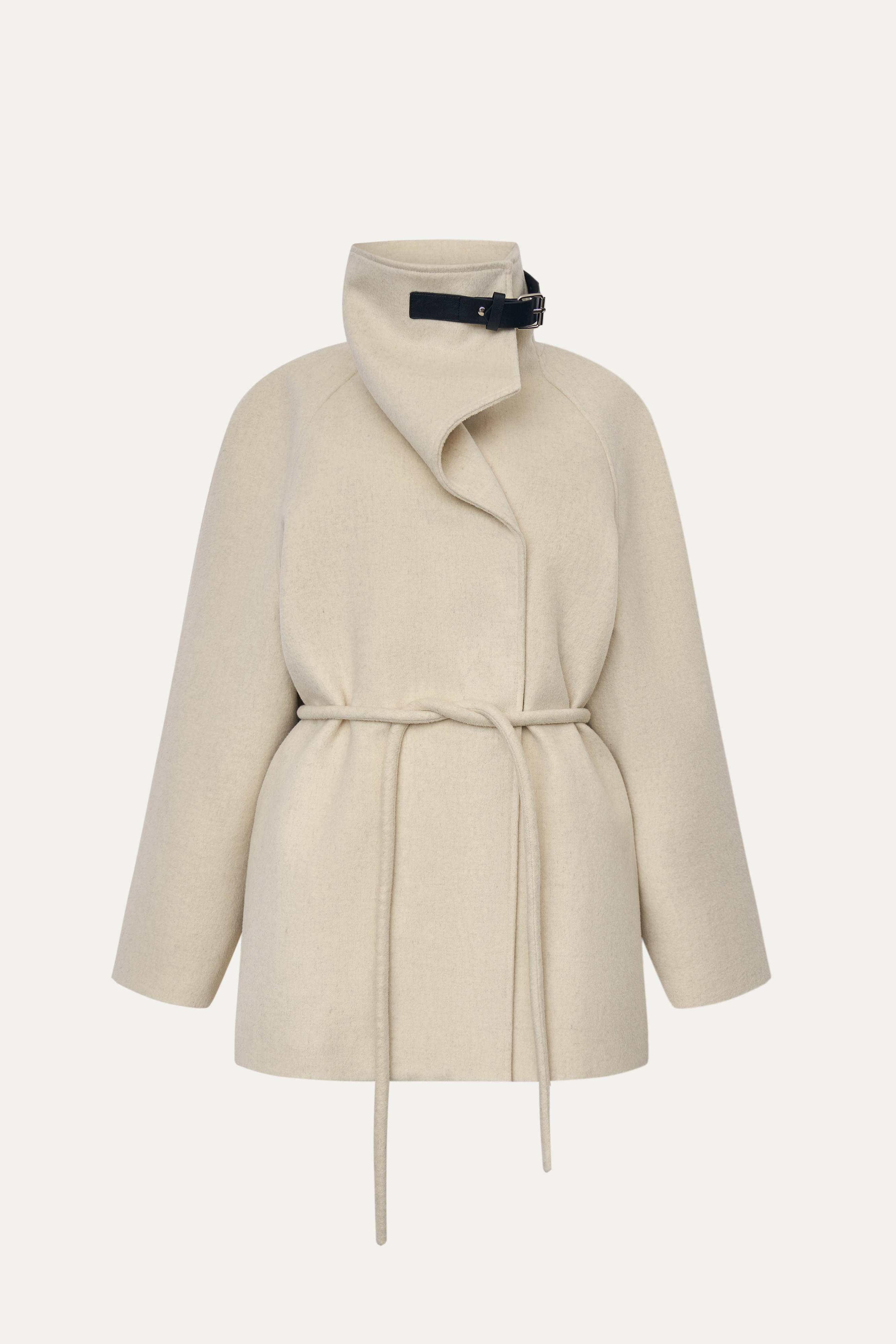 3. Высокий воротник-стойка защитит от ветра и дождя, а декоративный ремешок из искусственной кожи станет изящным акцентом.