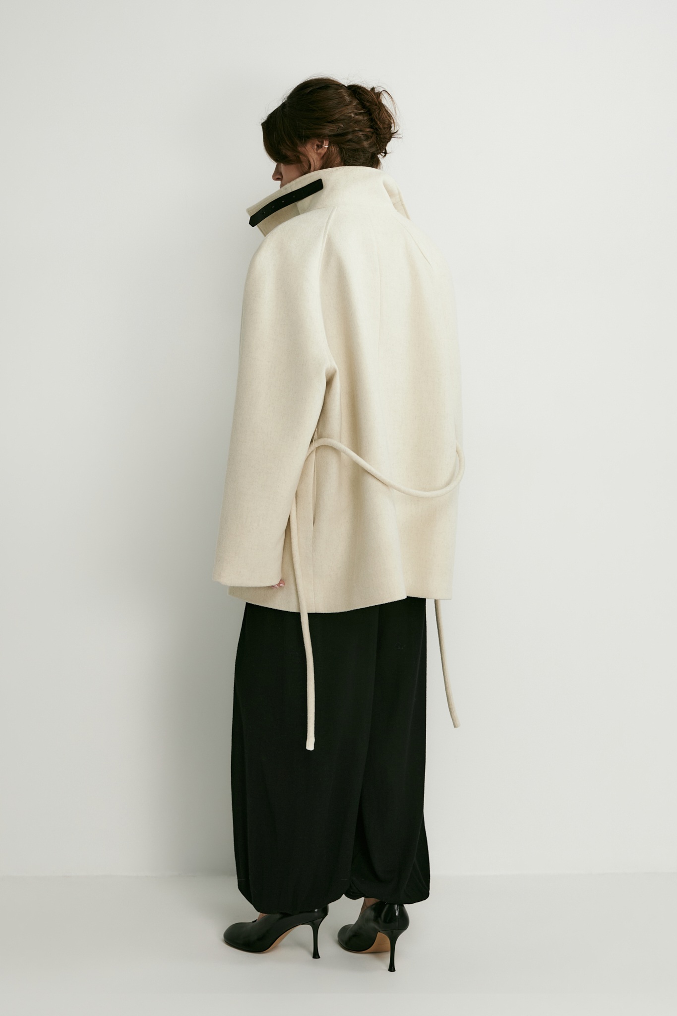 2. Модель на потайных кнопках дополнена круглым канатным поясом, с помощью которого можно легко подчеркнуть талию.