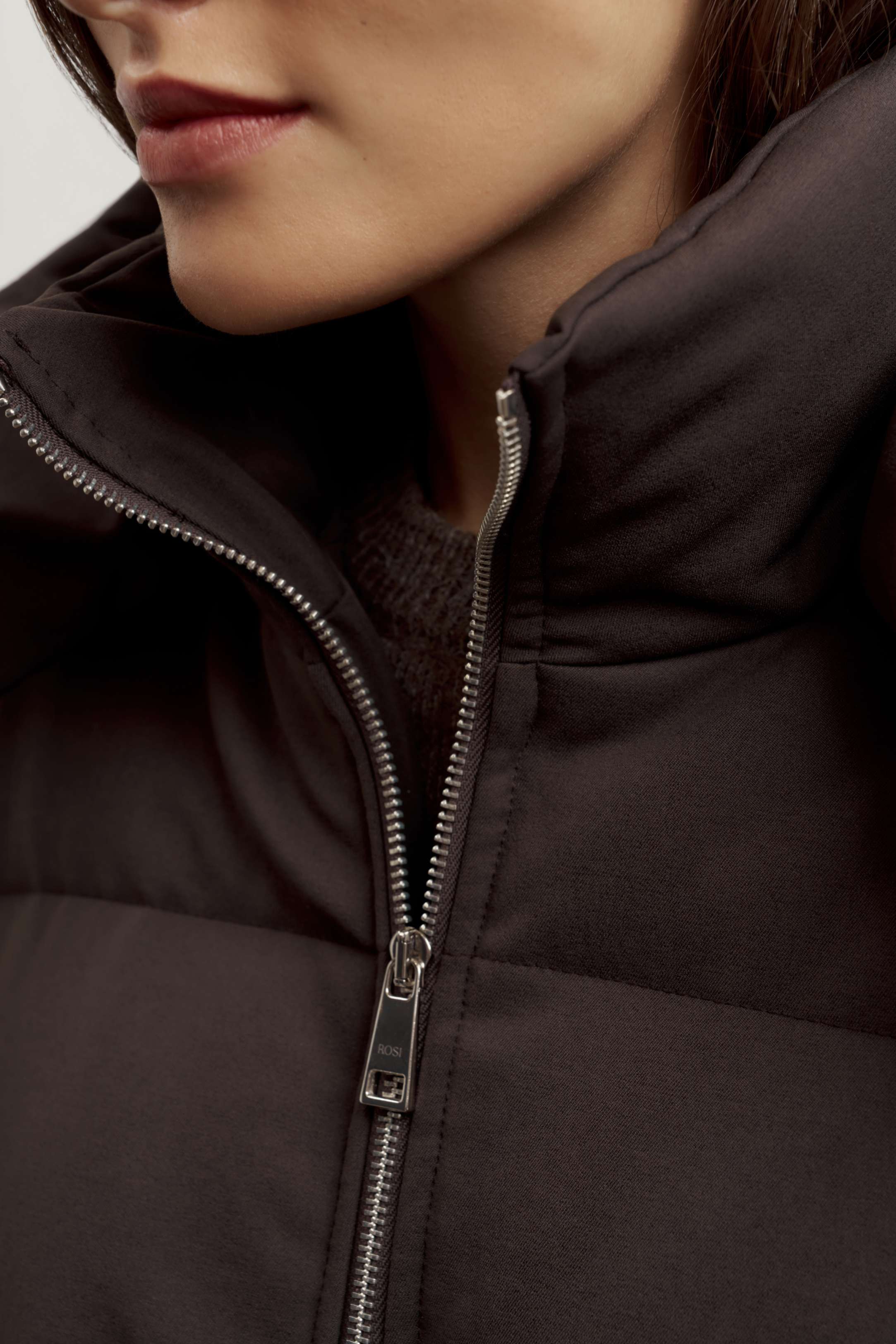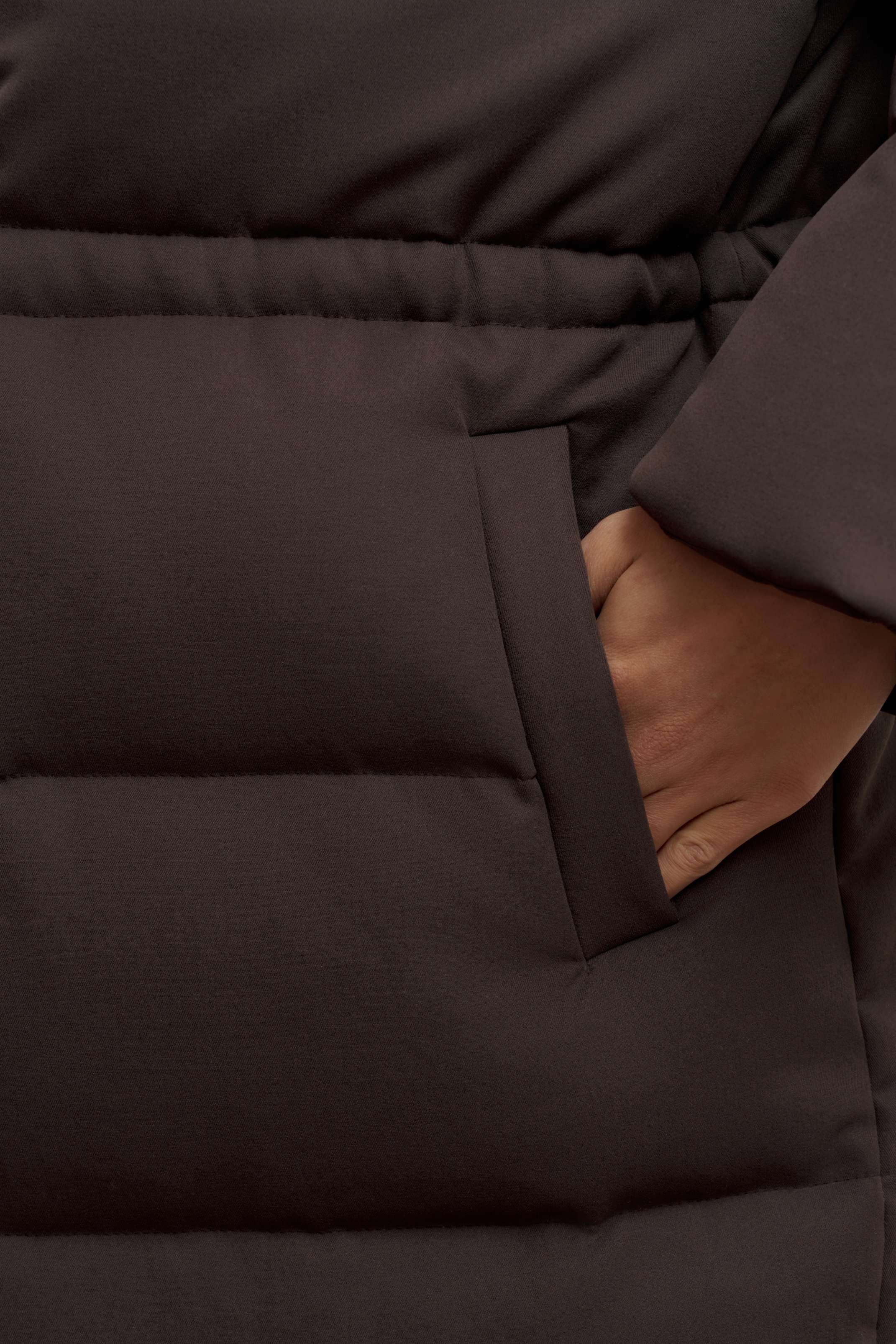 Новинка выполнена из водоотталкивающей ткани с матовой поверхностью. Внутри — теплый наполнитель из невесомого утиного пуха и пера.