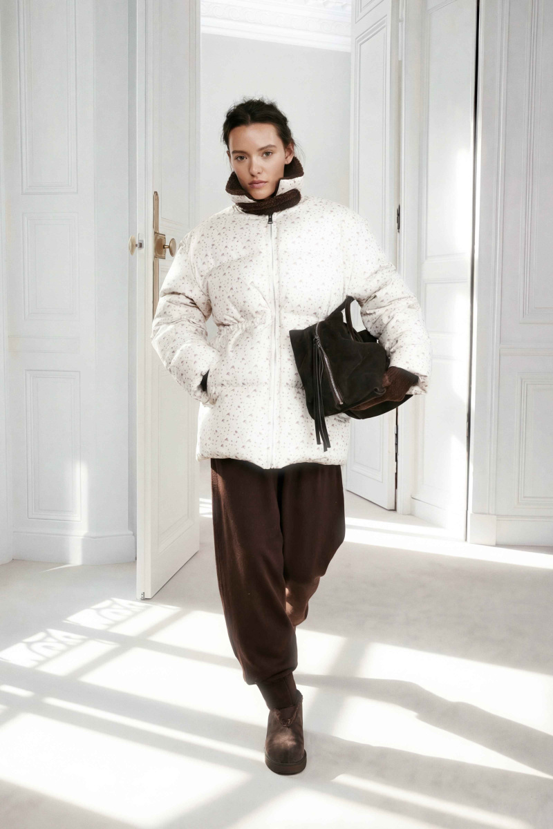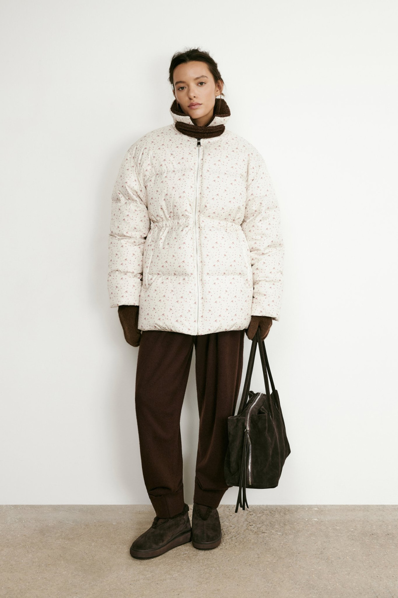 2. Отложной воротник трансформируется в воротник-стойку, чтобы защитить шею от ветра, а манжеты в рукавах сохраняют тепло. Кулиска подчеркивает талию.
