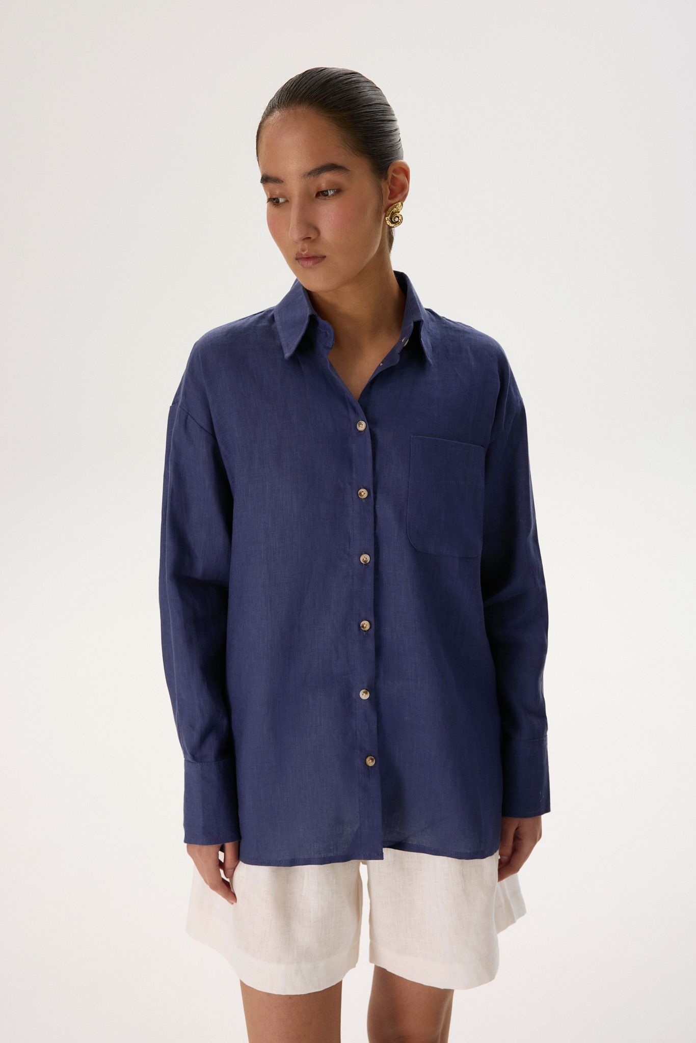 Базовая рубашка прямого силуэта с нагрудным карманом — бессменный бестселлер льняной капсулы ROSI.