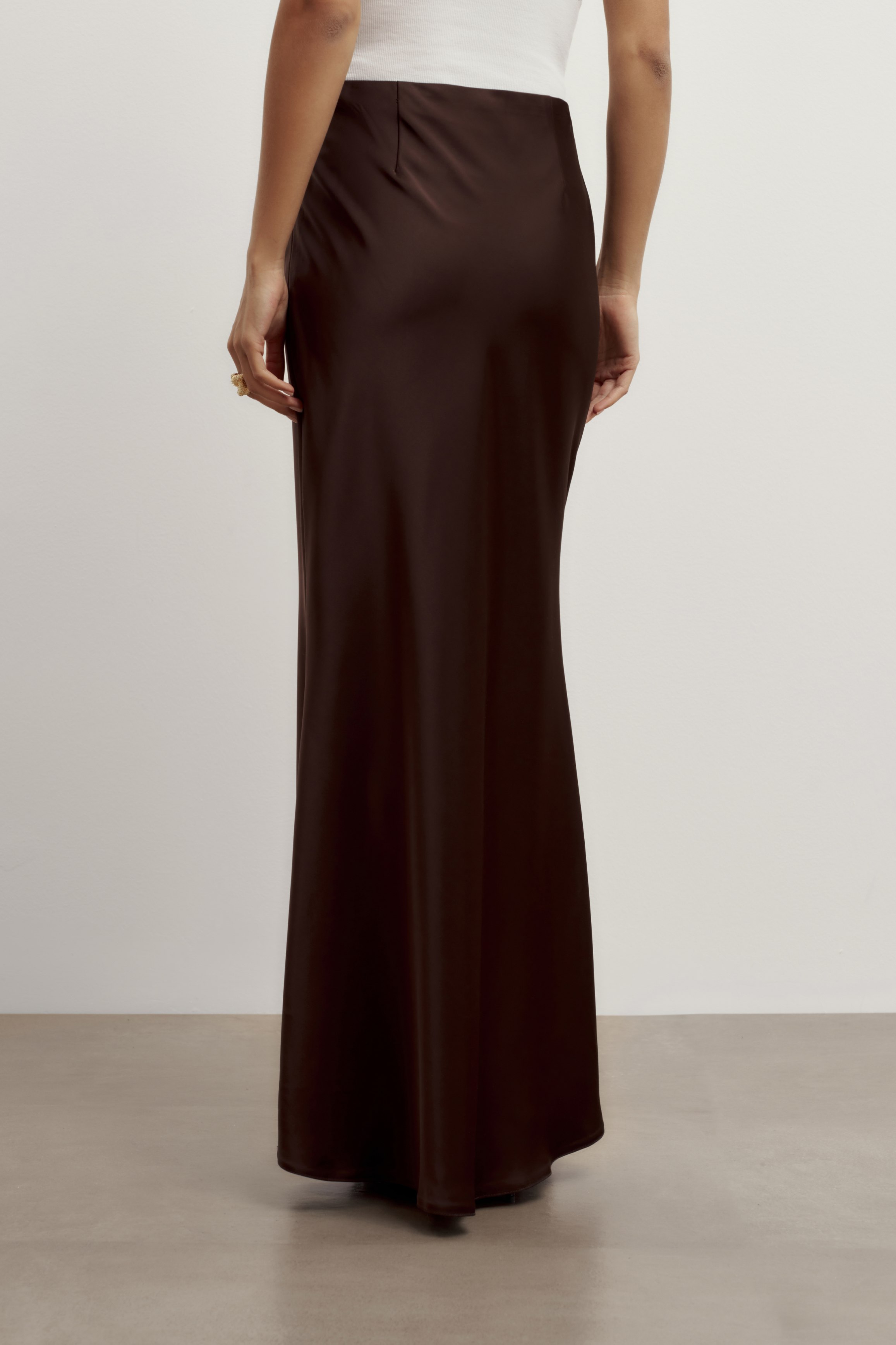 Низкая талия, длина в пол и слегка расклешенный подол делают модель практичной и универсальной для любой фигуры.