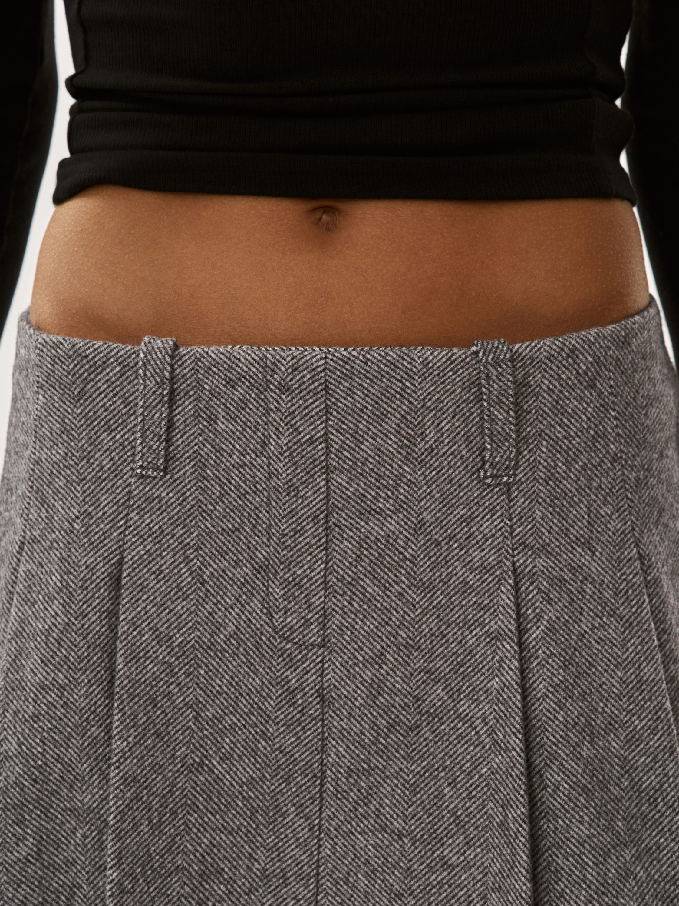 Выполнили новинку из плотной костюмной ткани в елочку и добавили функциональные шлевки для ремня.