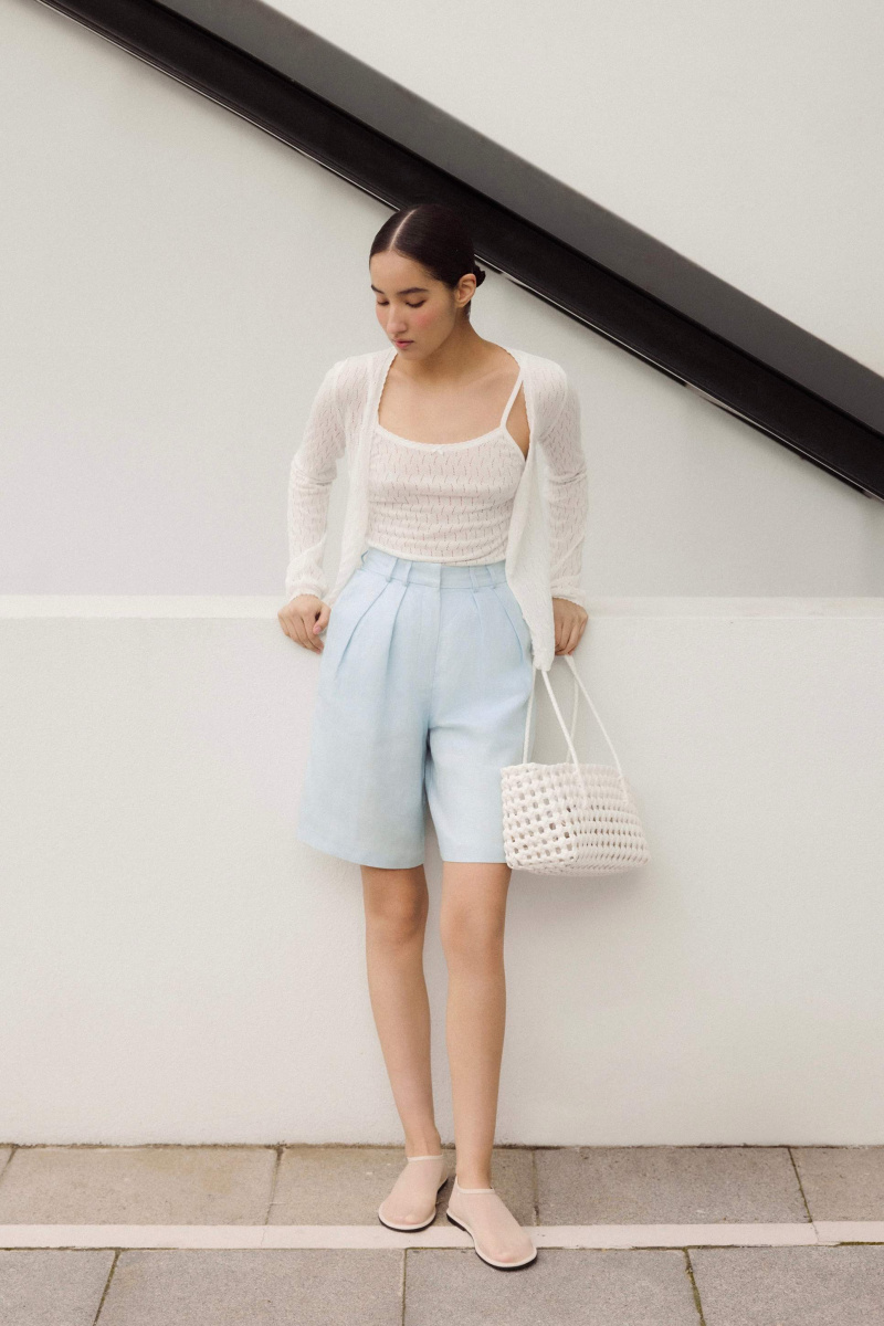Названия изделий в летней коллекции вызывают теплые ассоциации с летом из детства. Шорты-бермуды Rosa напоминают о каплях летней утренней росы, в которых отражается безоблачное голубое небо.