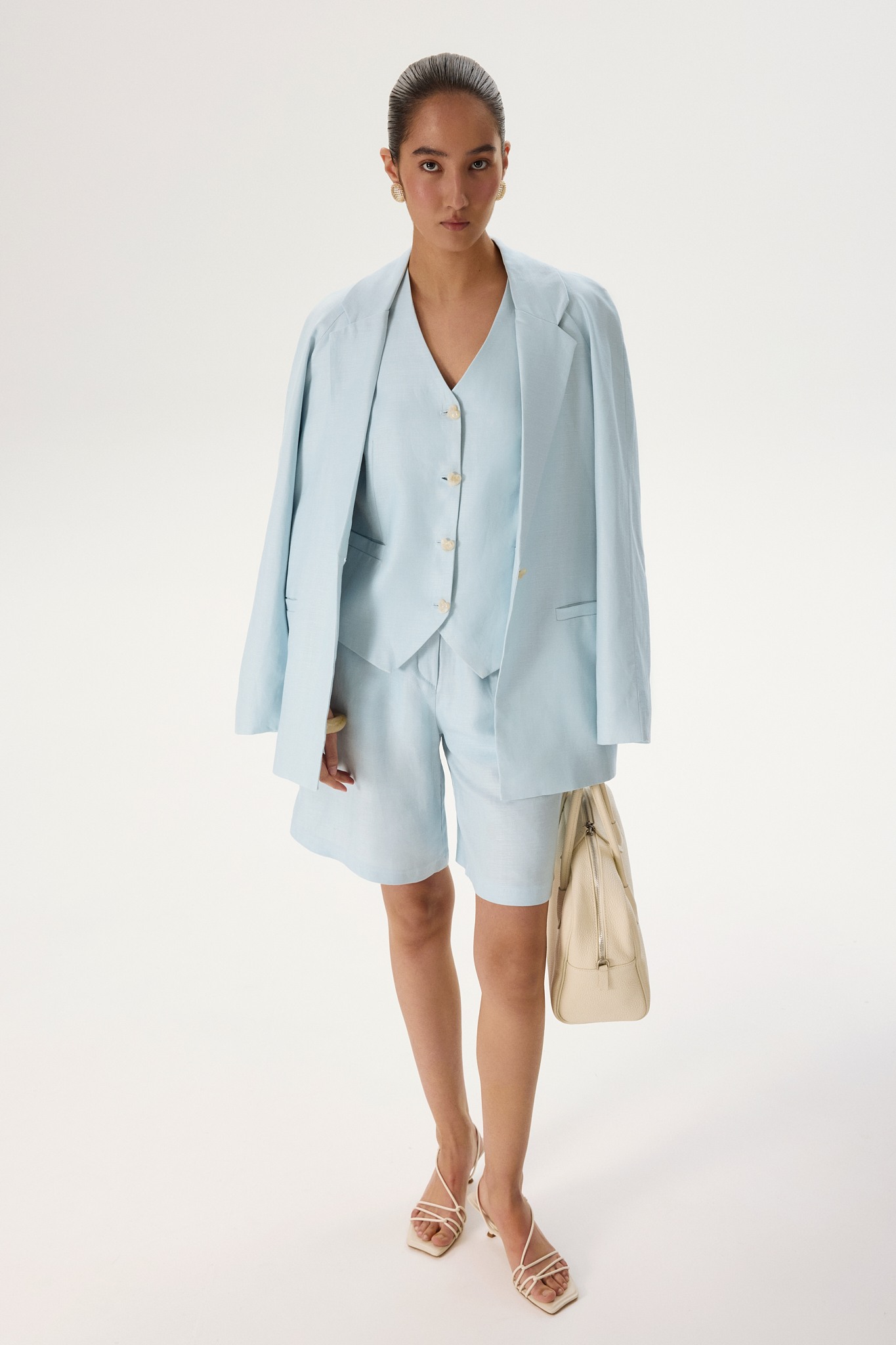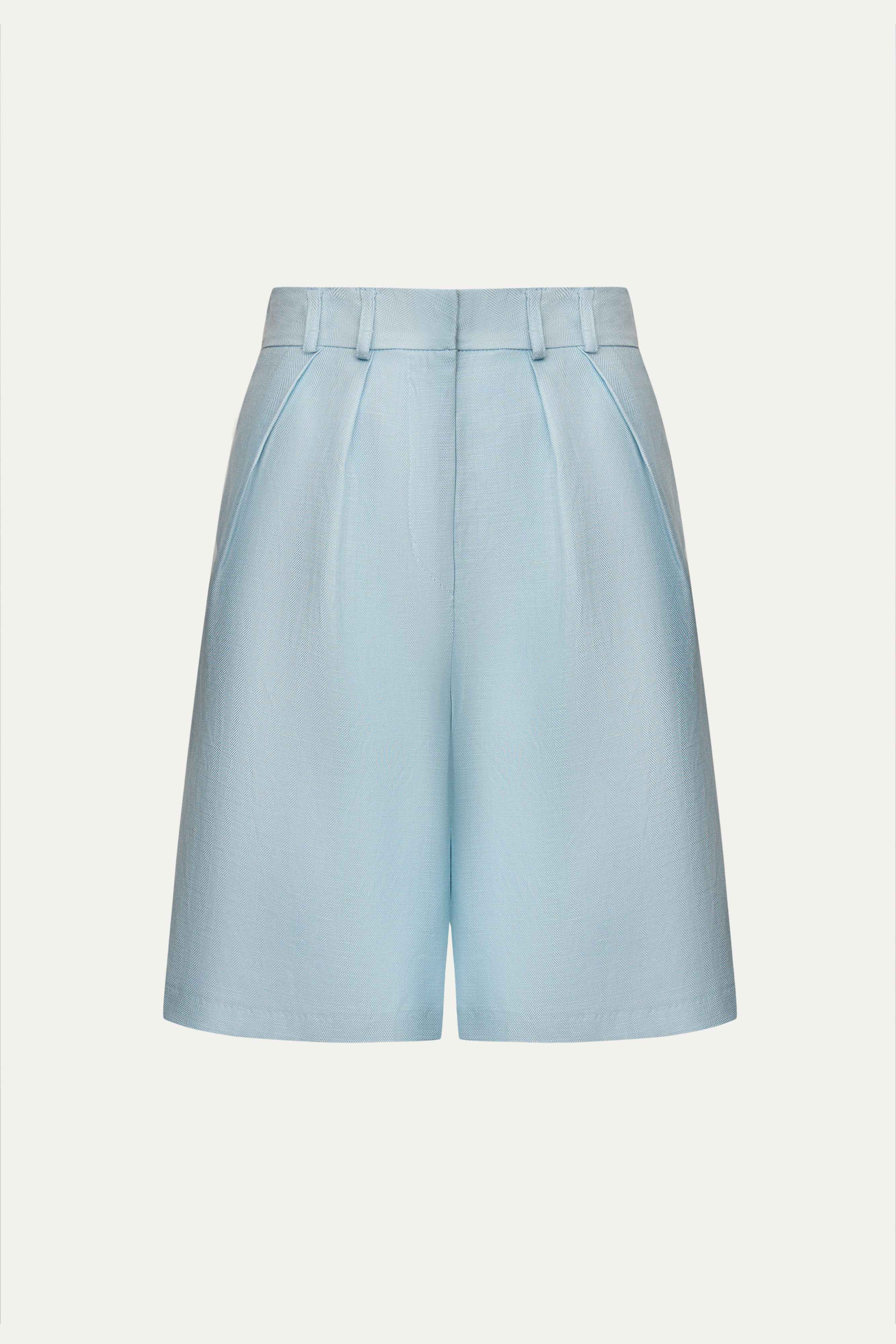 Новинка выполнена изо льна с фактурой «елочка» — такой материал отлично пропускает воздух и отводит влагу, а также ощущается на теле приятной прохладой. Подкладка в виде потайных шортиков выполнена из 100% хлопка, чтобы обеспечить дополнительную мягкость и комфорт.