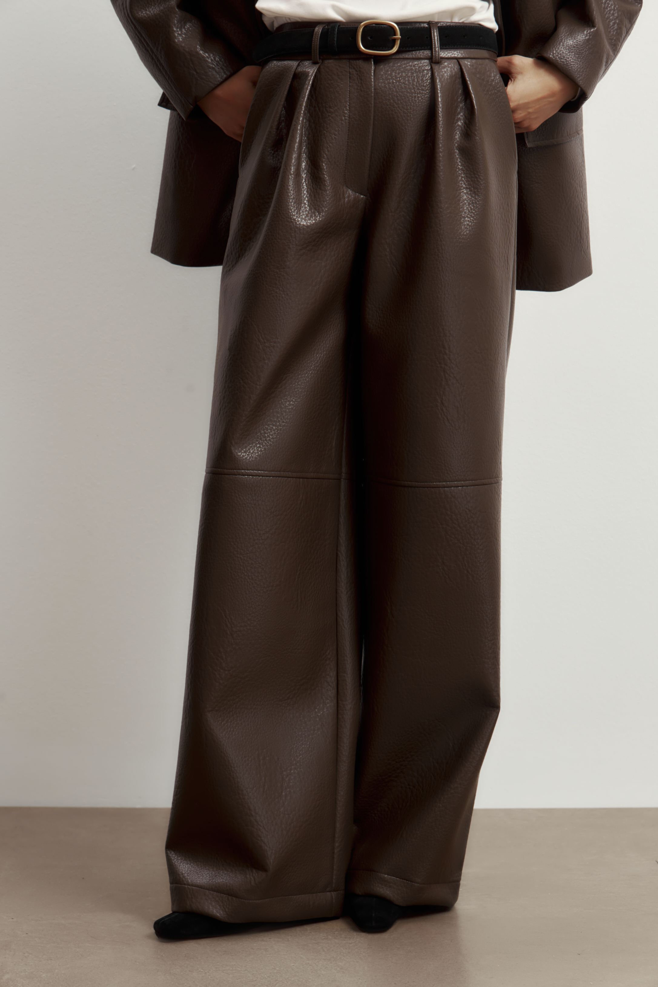 Брюки палаццо из экокожи — модный маст-хэв холодного сезона.