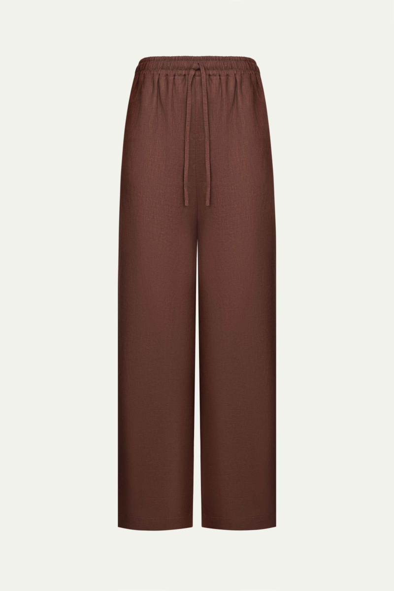 Брюки будут уместны как в городе, так и на пляже. Комбинируйте их с майкой в рубчик или купальным топом, а поверх надевайте льняную рубашку из нашей коллекции.