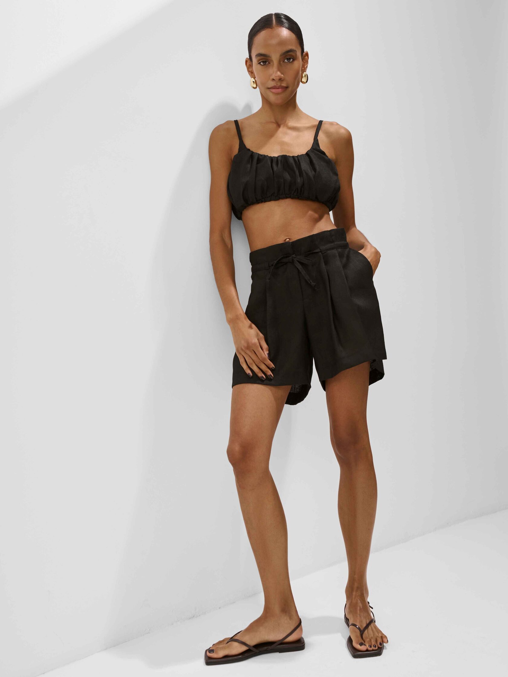 Сочетайте шорты с другими айтемами из нашей льняной коллекции: топом и рубашкой.