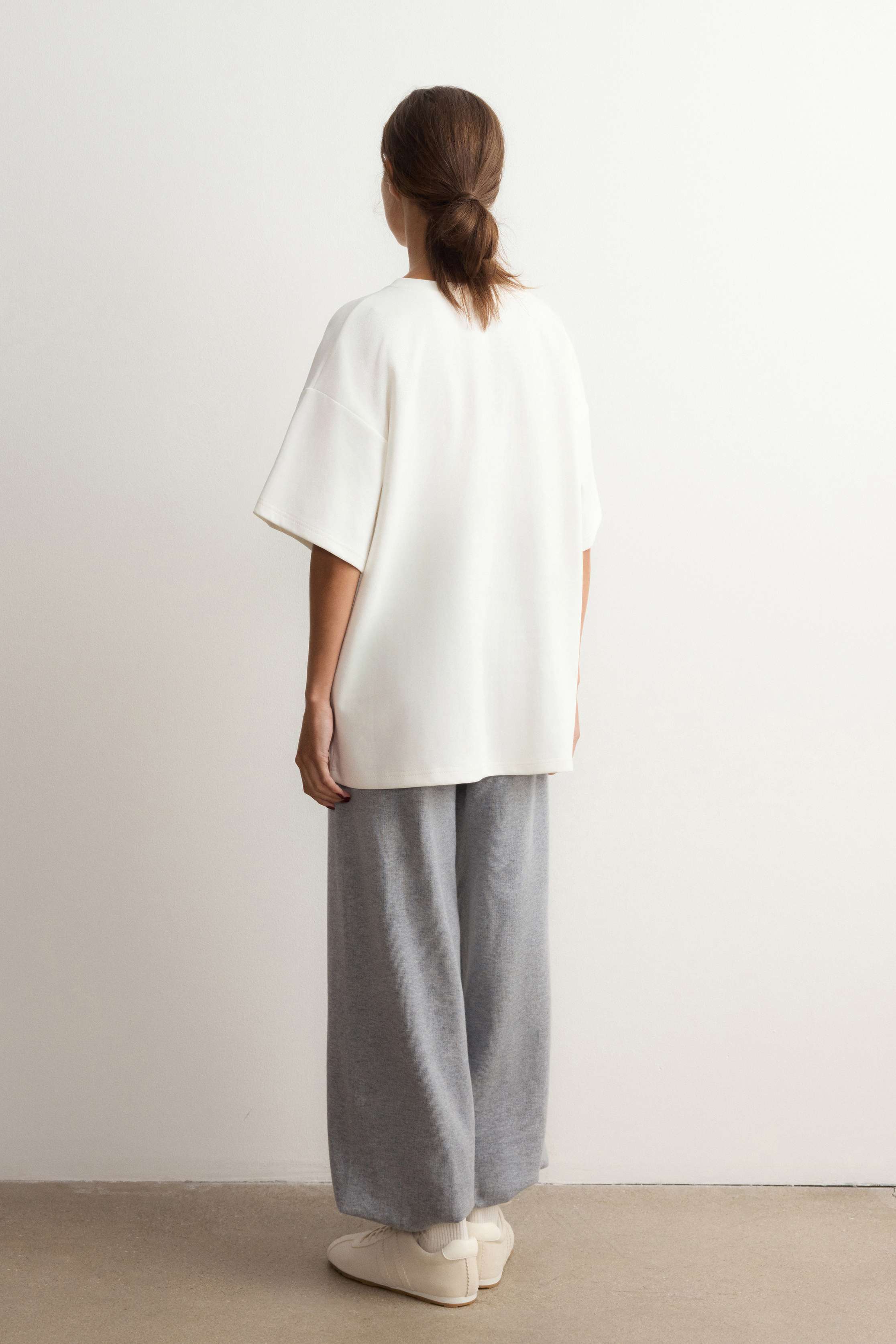 Для футболки мы выбрали 100% хлопок, а при изготовлении использовали технологию Double Face, чтобы сделать ткань плотной и двухсторонней.