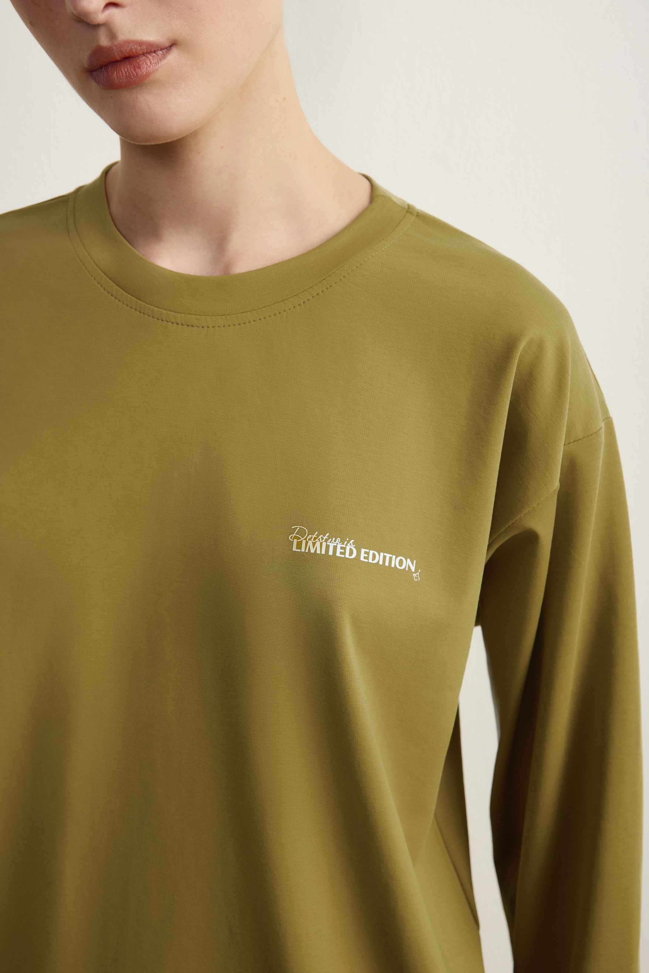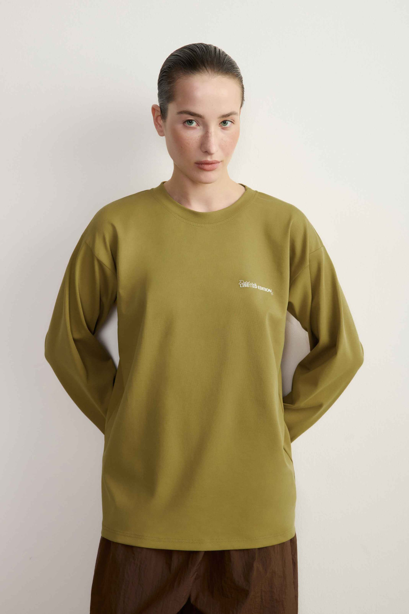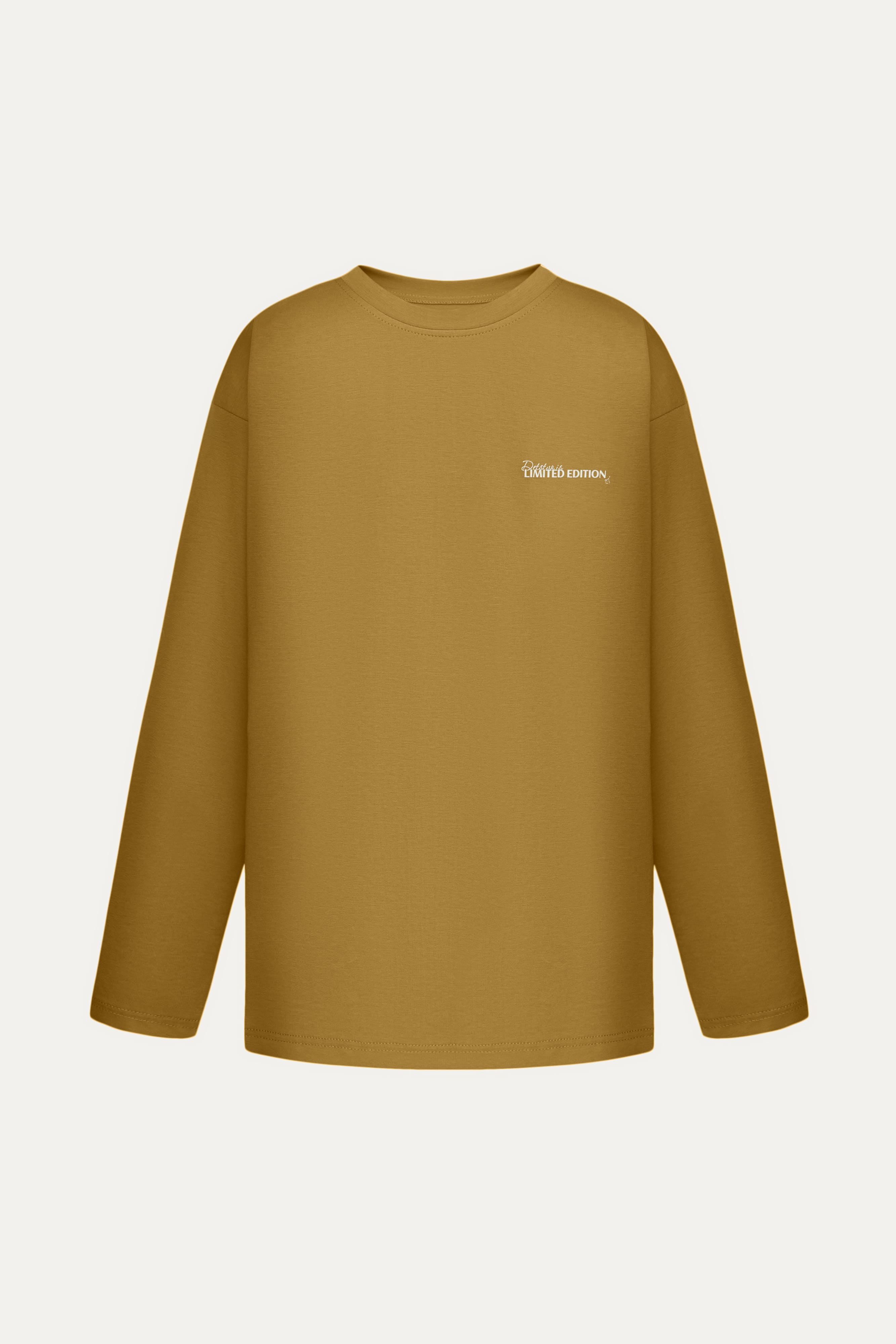 2. Эту модель мы выполнили в оливковом цвете, который отлично сочетается с осенней коричневой гаммой, и дополнили лаконичным принтом «Detstvo is limited edition».