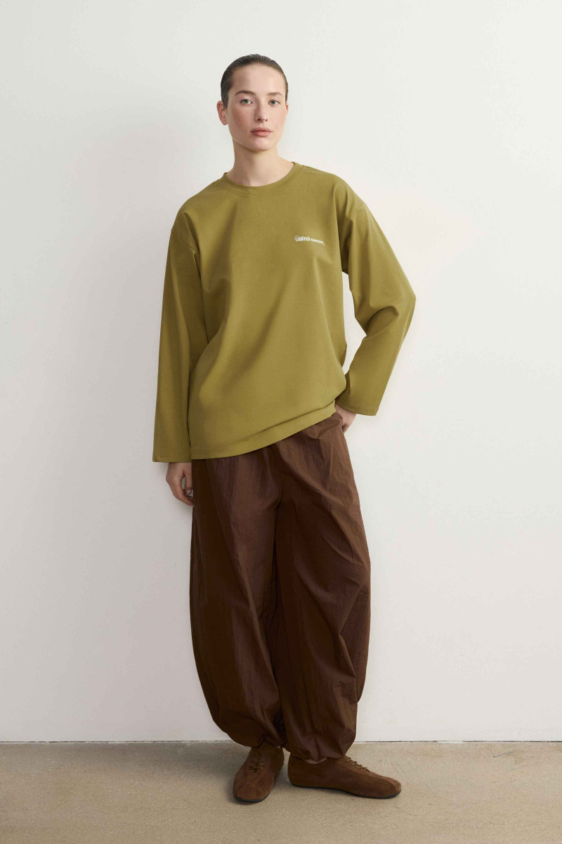 Лонгслив из плотного хлопка — лучшая альтернатива футболке в холодные дни.