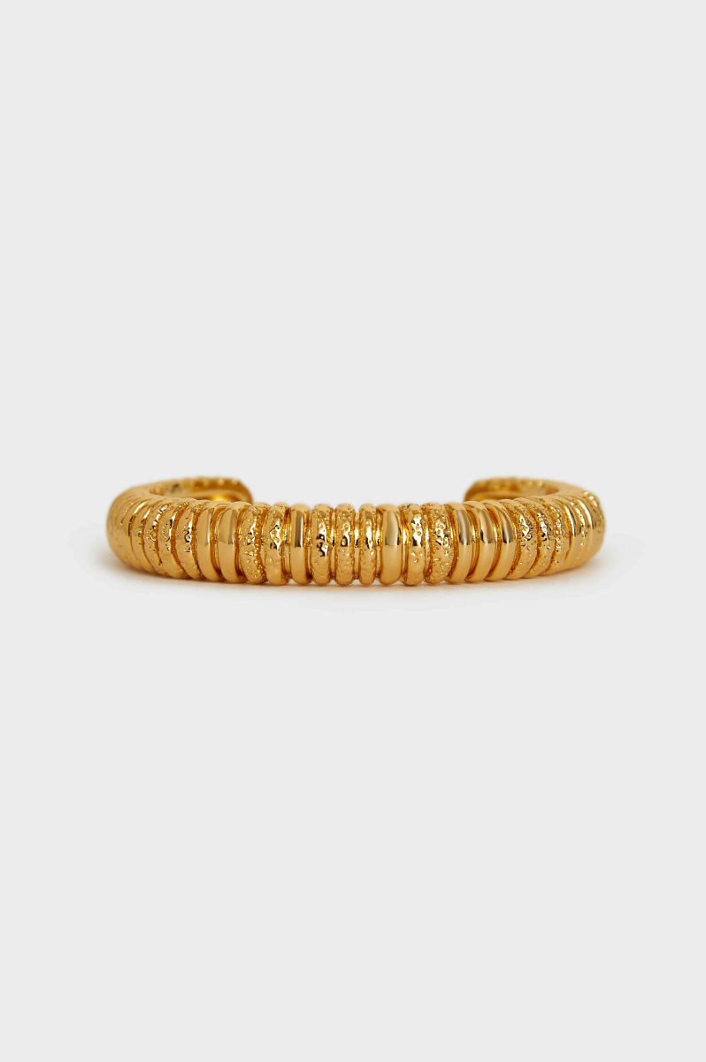 Незамкнутый фактурный браслет в винтажном стиле — тот самый необходимый акцент в любом образе.